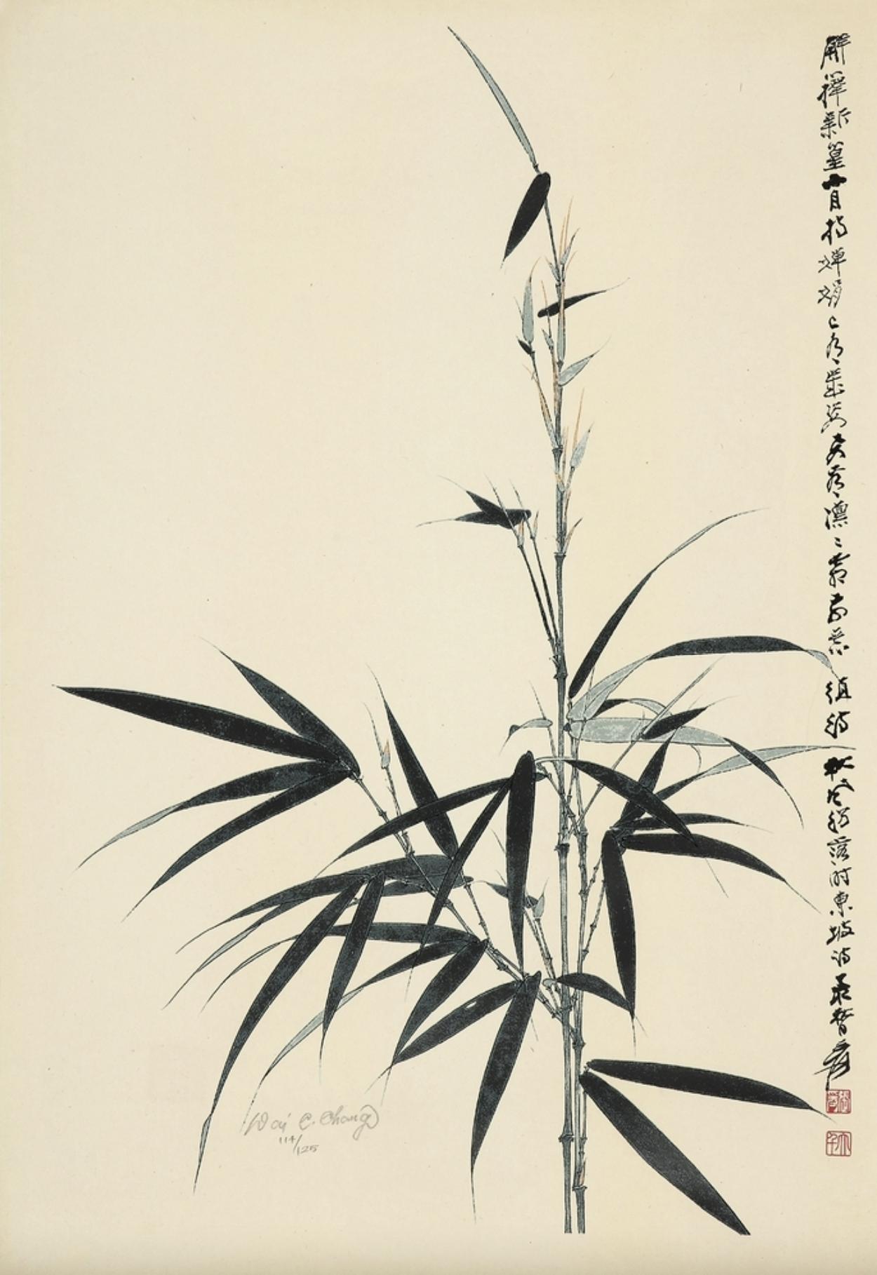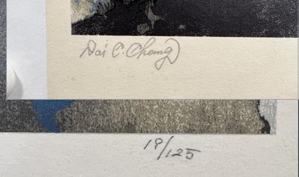 由此,张大千开始亲自绘画、设计、印制石版画,并以欧美版画作品为例,完成后在画面上郑重的以英文方式签上Dai.C.Chang,以及该限量版画的编号。