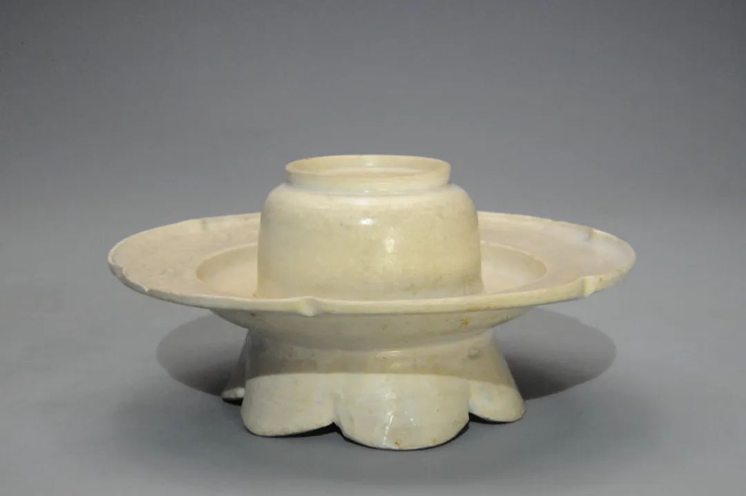 ▲白釉刻莲纹“孟”字款碗 五代至北宋