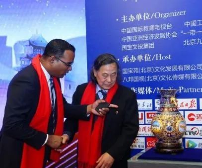 米振雄老师创作的一带一路四海同心景泰蓝赏瓶作为“一带一路”65国外交礼赠与斯里兰卡及丝路沿线国家大使,寓意深刻。