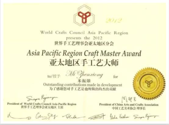 “亚太地区手工艺大师”这一荣誉称号是在国家级工艺美术大师中经过严格筛选和评选产生的,它代表了整个亚太地区手工艺领域的最高国际认可。米振雄大师2012年荣获“亚太地区手工艺大师”成就举世瞩目,是当之无愧的景泰蓝宗师!