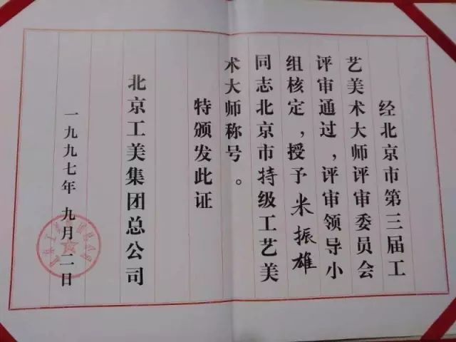 2003年米振雄设计的“巨雄瓶”获北京首届工艺美术展特别金奖。2005年“故宫水缸”获北京旅游品设计大赛金奖。所获奖项不计其数!
