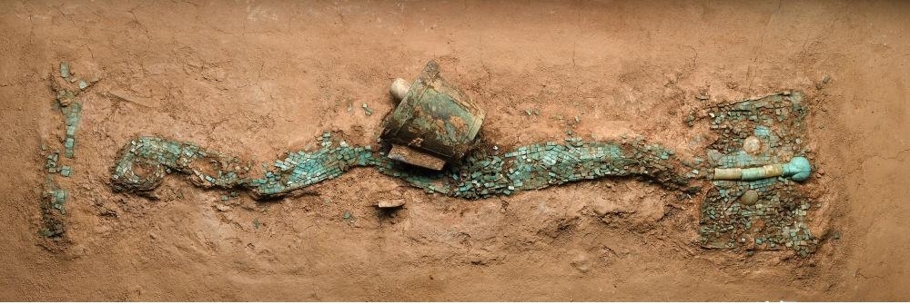 现藏于中国考古博物馆的绿松石龙形器(2024年1月29日摄)。新华社记者 李贺 摄