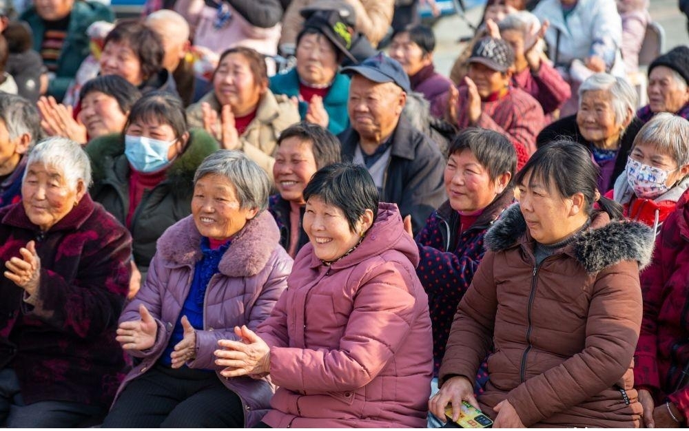 2024年2月11日,江苏省海安市胡集街道园庄村村民在“村晚”上欣赏文艺节目。新华社发(翟慧勇摄)