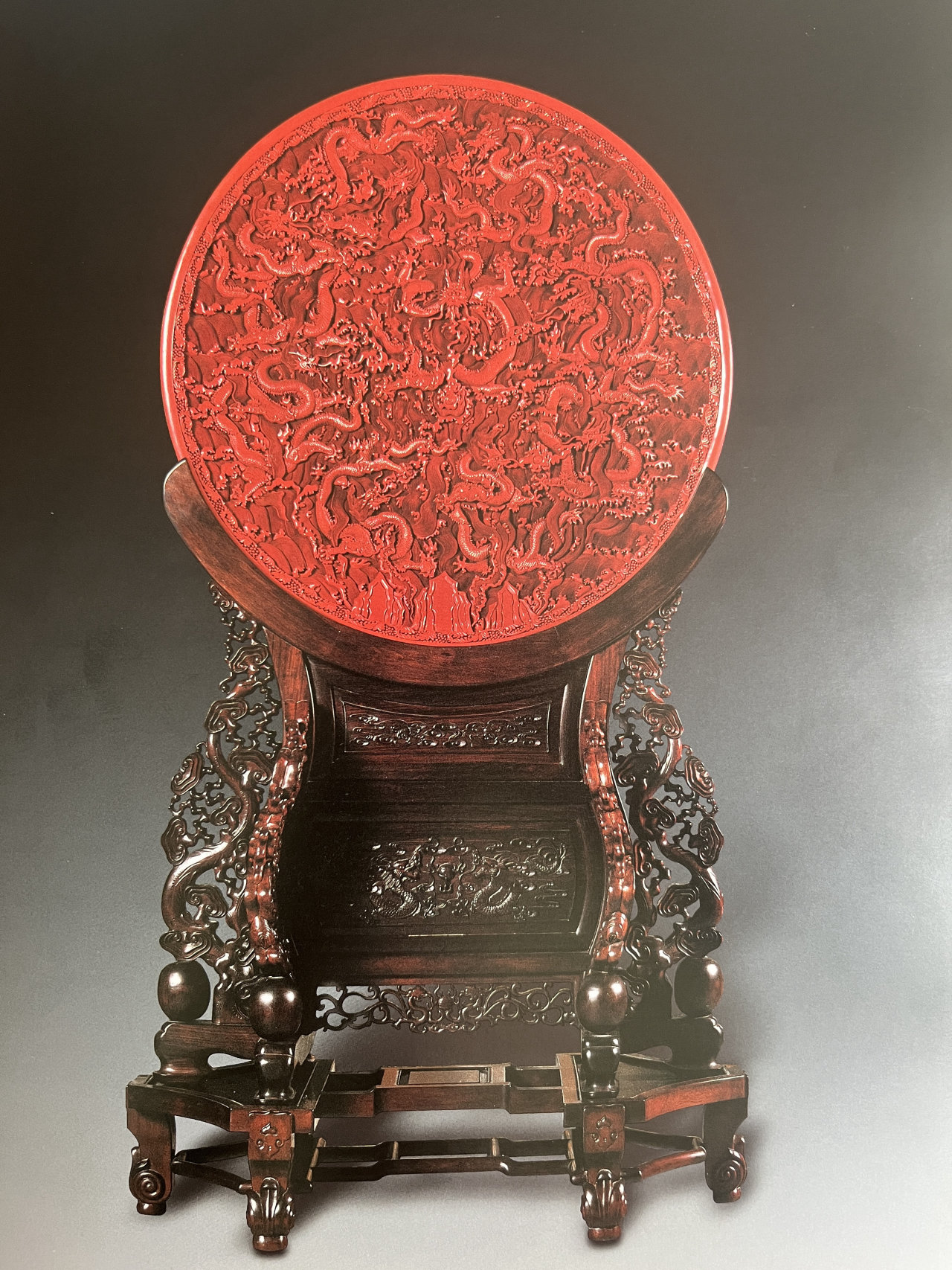 剔红九龙闹海盘被人民大会堂选用-在东小厅陈列