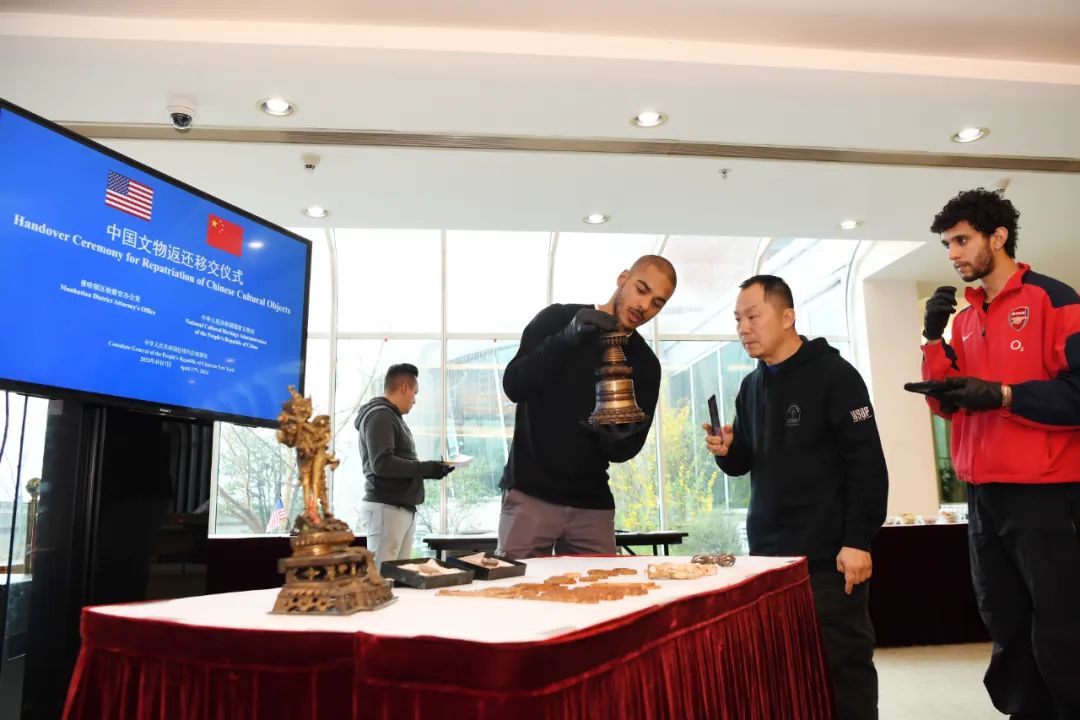 4月17日,在美国纽约中国驻纽约总领馆,工作人员点交中国流失文物艺术品。