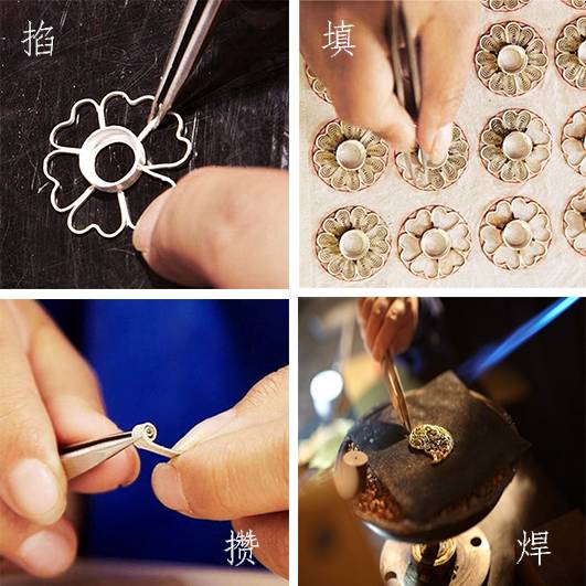 4、焊接:焊接是花丝镶嵌作品中技术难度较高的一门技艺、不同于一般机械工程的焊接,这种焊接为特种工艺焊接。