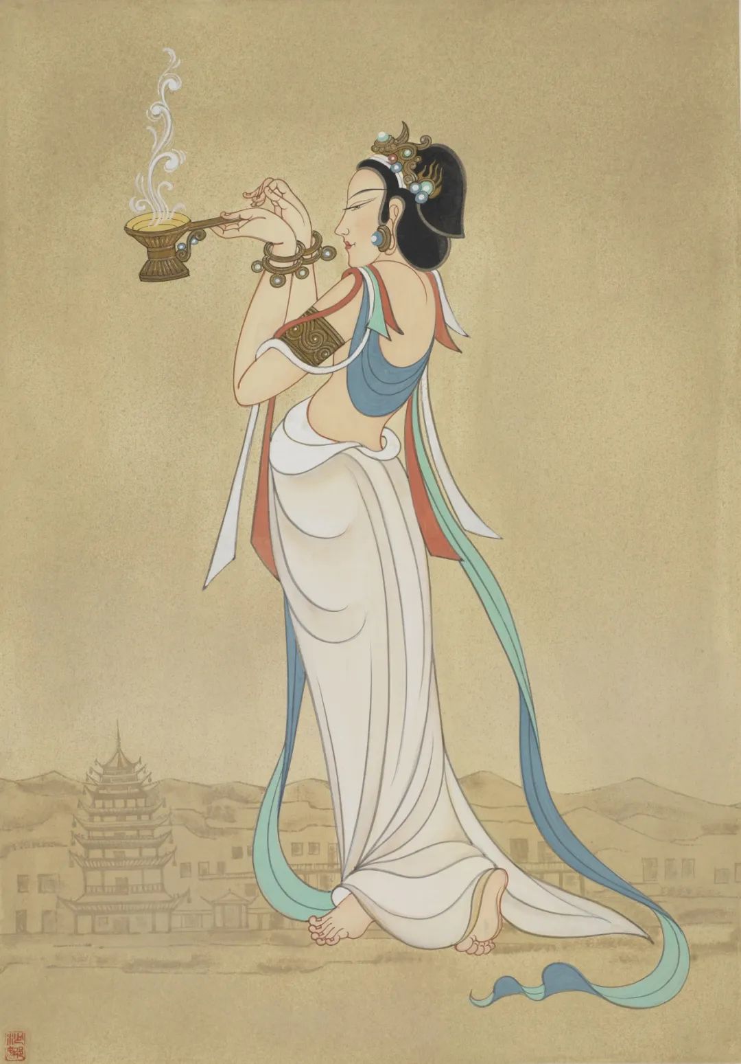 她早年敦煌壁画临摹之作以其独特的习画经历而具有特殊意义。敦煌艰苦的生活环境和父辈坚韧的艺术斗志使其临摹作品具有踏实稳重而不乏灵动拓进的特质。她的作品不仅展现了她对敦煌艺术的深刻理解,也体现了她对中国传统文化的热爱和执着。