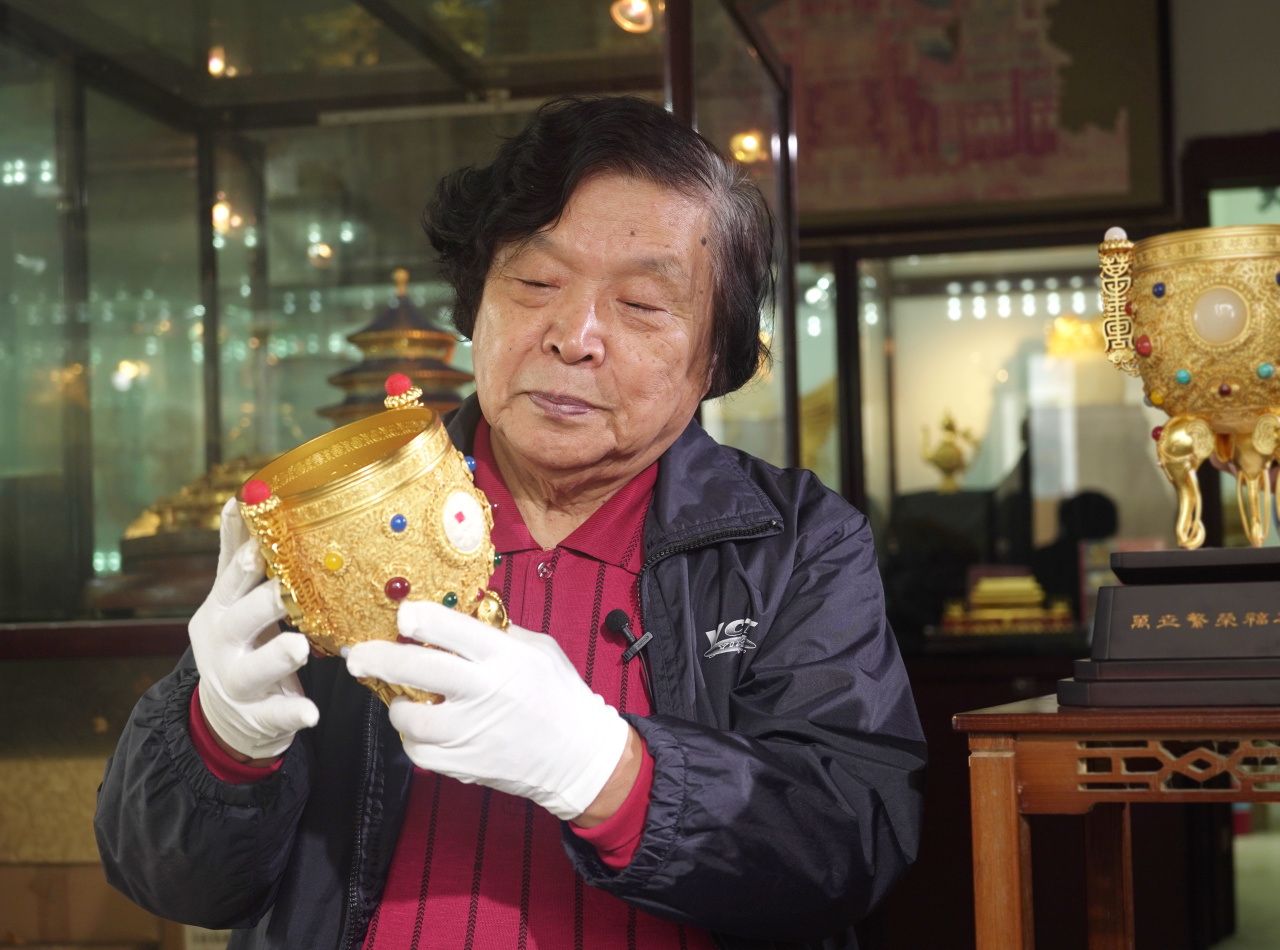 王树文,1943年生于北京,先后师从邓永贵、夏树海、杨士忠等老艺人。现为中国工艺美术大师,国家非物质文化遗产代表性传承人。因其在花丝镶嵌领域造诣颇深,被尊为“花丝镶嵌第一人”,更有“一手金丝”的美誉。其花丝作品精美华贵、技艺精绝,被视为当代艺术珍品。