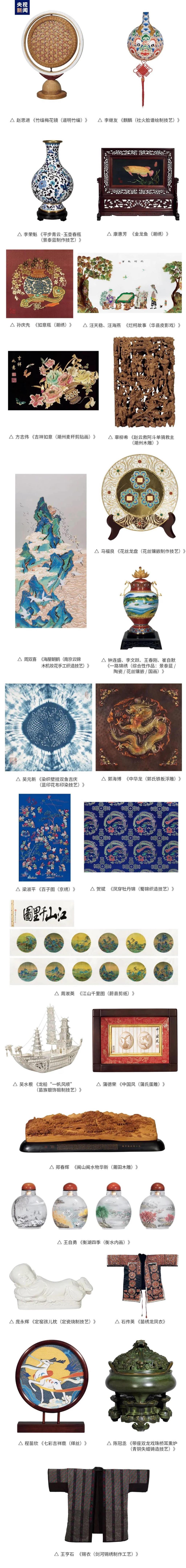 同时,赵思进、李继友、李荣魁、康惠芳、孙庆先、汪天稳、方志伟、辜柳希、周双喜、马福良、李文跃、吴元新、王春刚、钟连盛、郭海博、梁淑平、周淑英、贺斌、吴水根、崔自默、郑春辉、蒲德荣、王自勇、庞永辉、石传英、汪海燕、程苗欣、王亨石、陈冠丞等多位中国非遗大师的作品在大展亮相,观众可以近距离观赏中国非物质文化遗产,深刻感受中国传统文化的发展与演进。