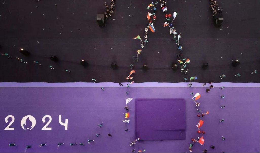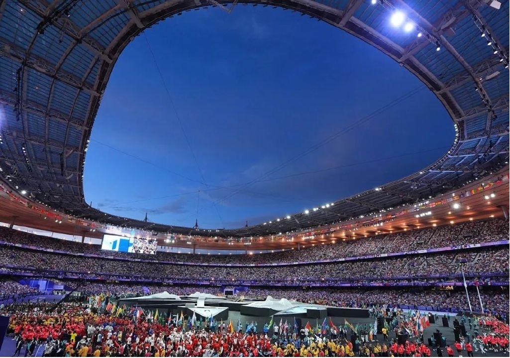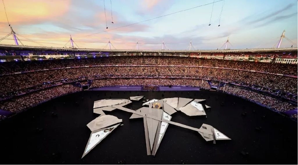 与开幕式在塞纳河上举行的流动的盛宴不同,闭幕式的整个过程在法兰西体育场内回归传统呈现方式进行。