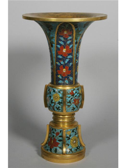 在马未都先生撰写的《景泰蓝的前世今生》中,此觚作为封面珍宝展示被大众所熟知。2013中国邮政发行的《景泰蓝》特种邮票,一套6枚中此花觚亦在其列。其至高地位无以轮比。