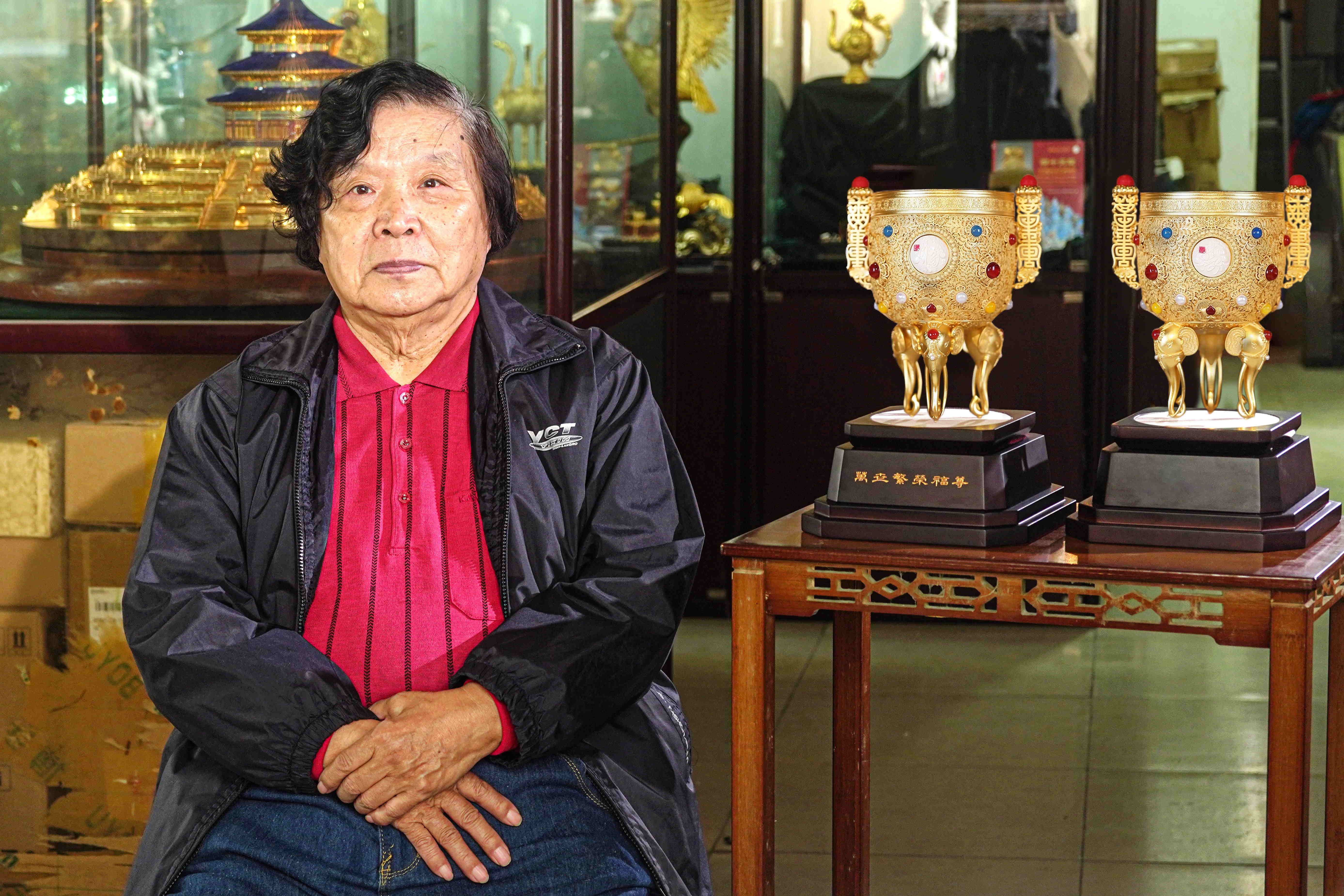 作品结构极其复杂,五层花丝每一个看不见的焊接都极具难度,两位大师凭借几十年的经验,才能将每一个部件焊接的严密无缝隙又不损伤贵金属原有纯度。