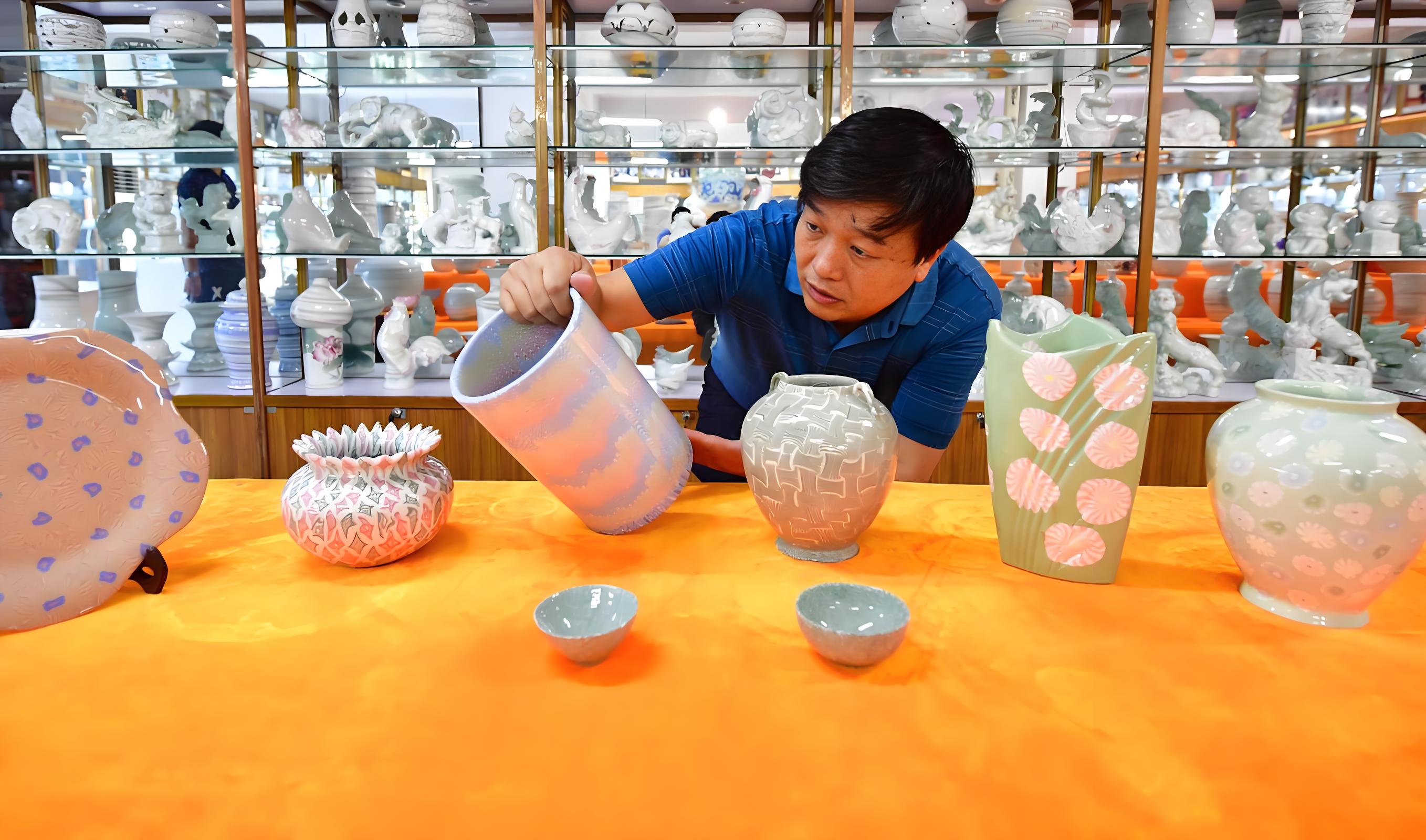 柴战柱,一位土生土长的焦作人,自幼对陶瓷充满好奇。18岁进入碳素厂工作,下岗后毅然前往景德镇学艺。五年半时间里,他掌握了从选料到烧成的全流程技艺。