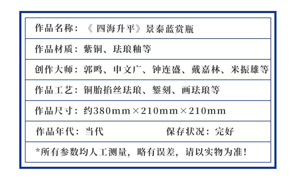 首页 > 积分商城 > 六位非遗大师联袂|《四海升平》景泰蓝典藏组器 问鼎APEC国礼巅峰