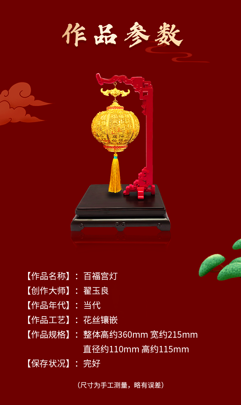 首页 > 积分商城 > 翟玉良亲铸|故宫同源《百福宫灯》 999足金丝·可转可藏|天安门灯笼宗师再造传世孤品!​