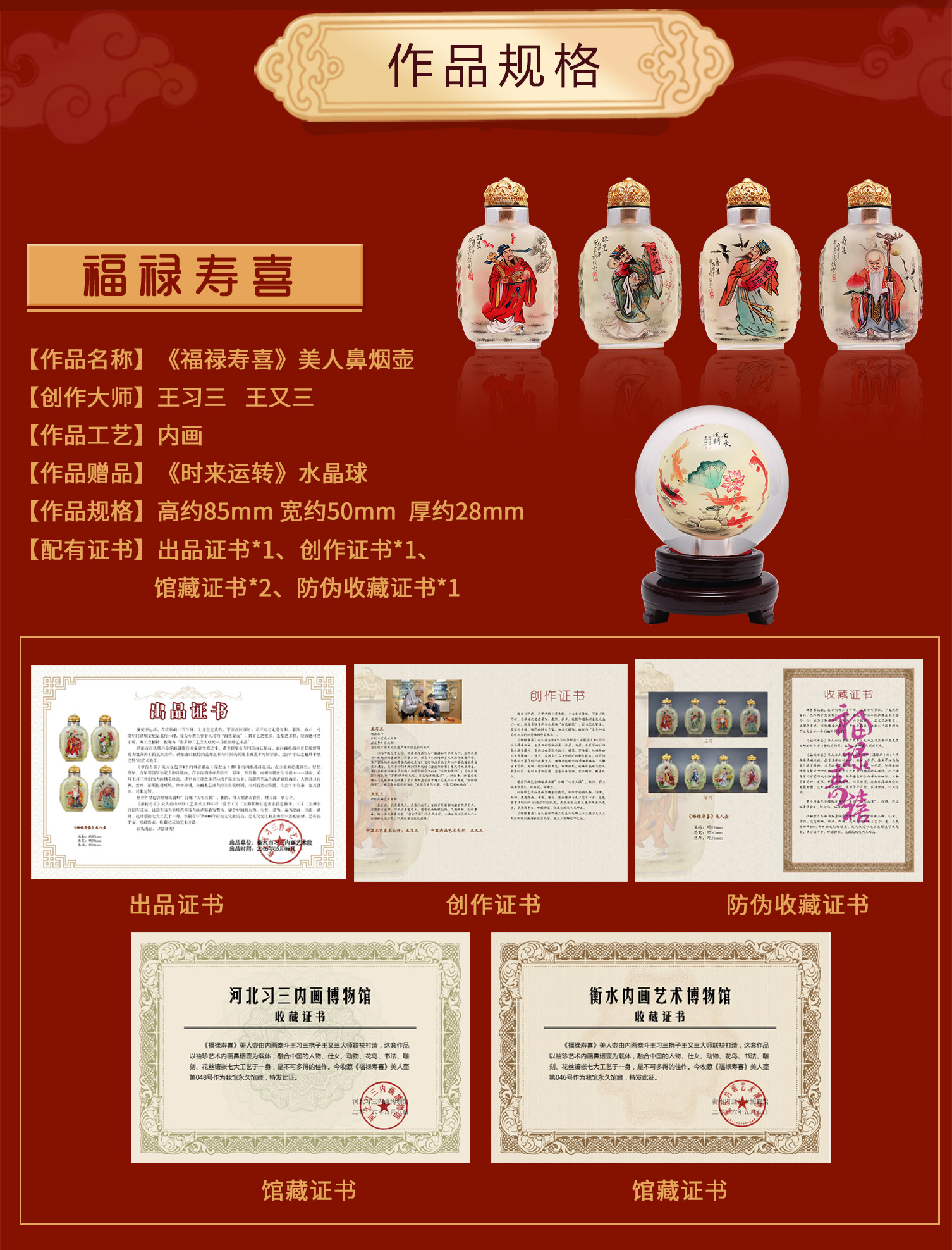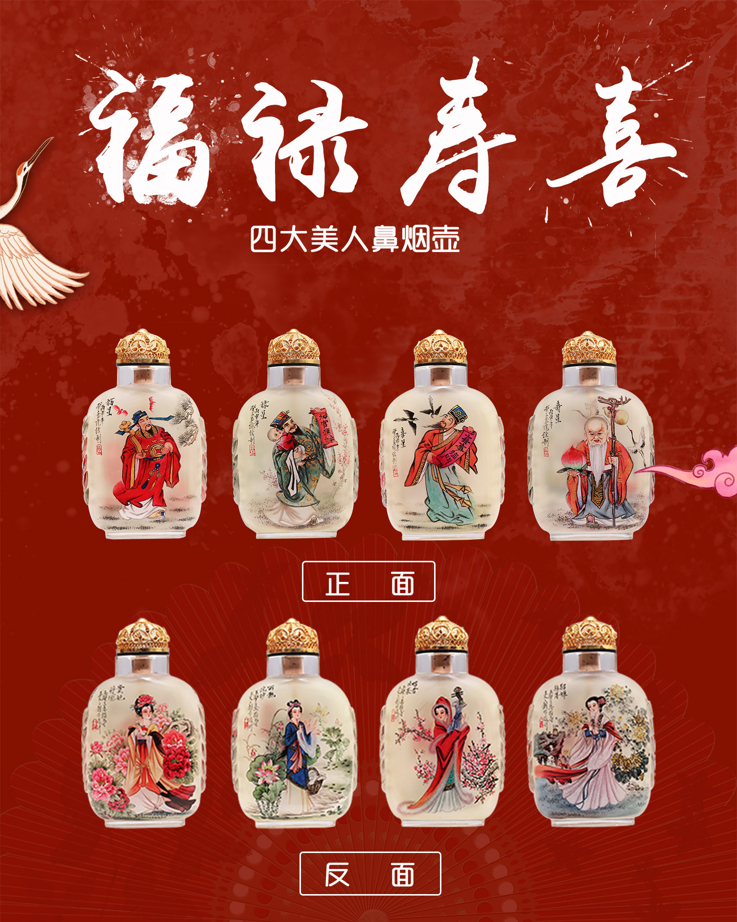 【中藝堂】王习三 内画《福禄寿喜》美人鼻烟壶