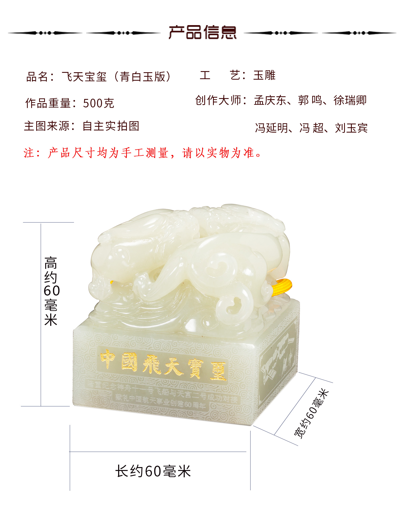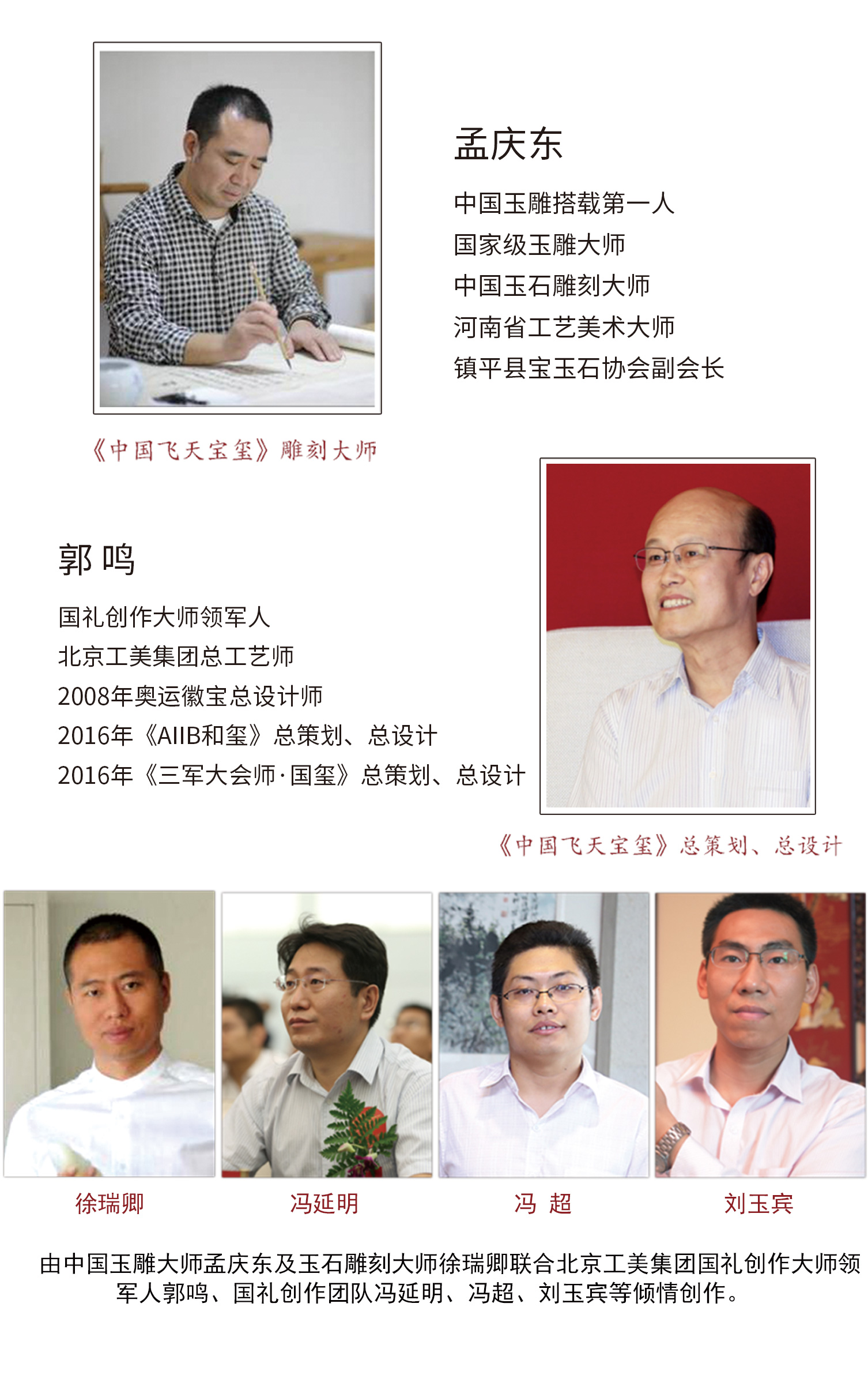 【中藝堂】孟庆东、郭鸣、徐瑞卿、冯延明、冯超、刘玉宾 中国飛天宝玺青白玉典藏版