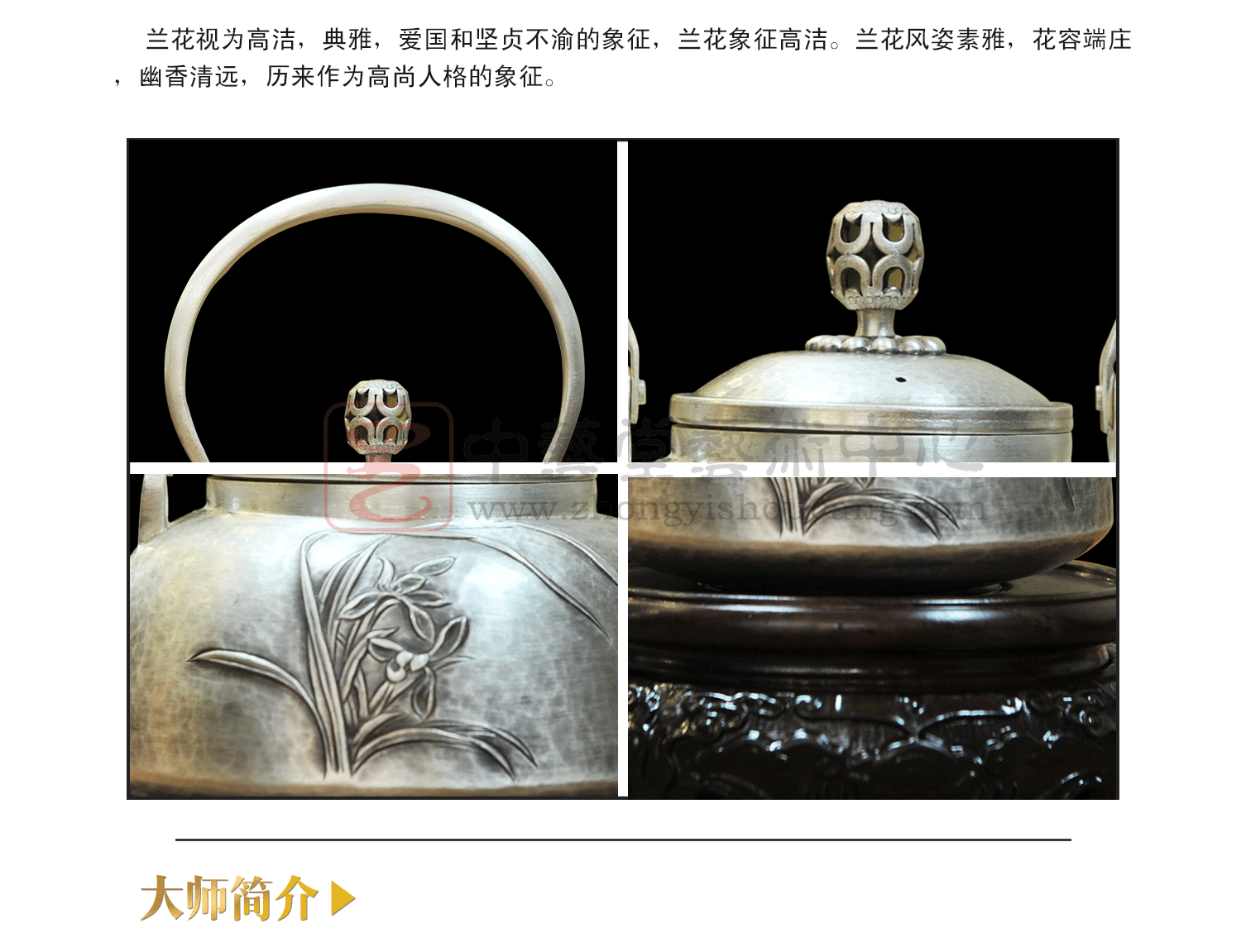 首页 > 錾刻丨紫砂丨雕漆 > 錾刻 > 黄俊军 > 【中藝堂】黄俊军 银壶《兰花》