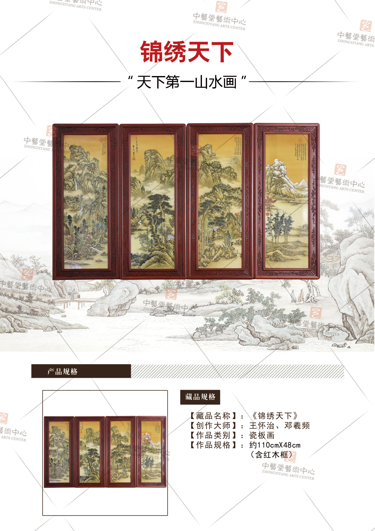 【中藝堂】王怀治、邓羲频 《锦绣天下》瓷板画