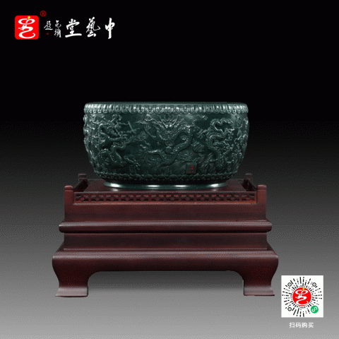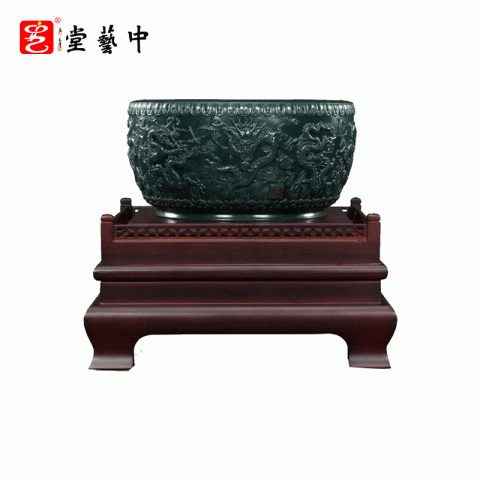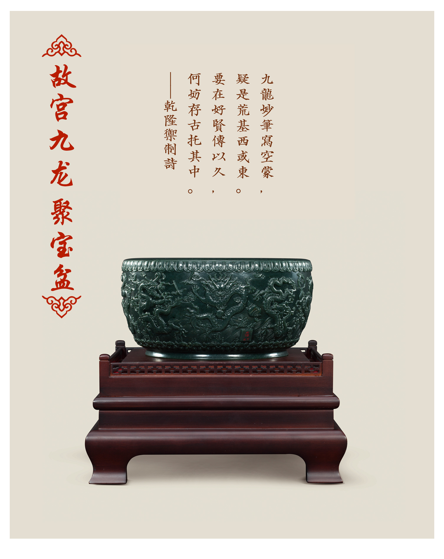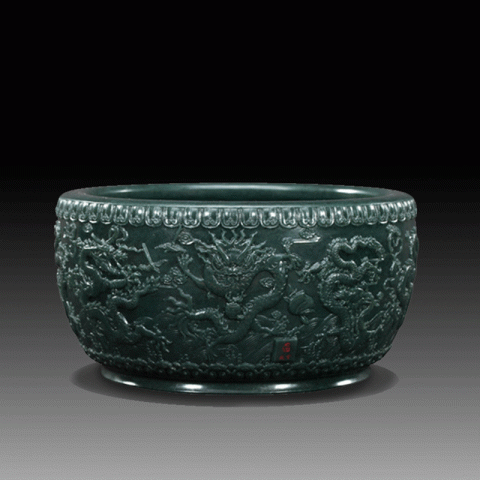 【中藝堂】袁广如、袁霖《故宫九龙聚宝盆》和田青玉版