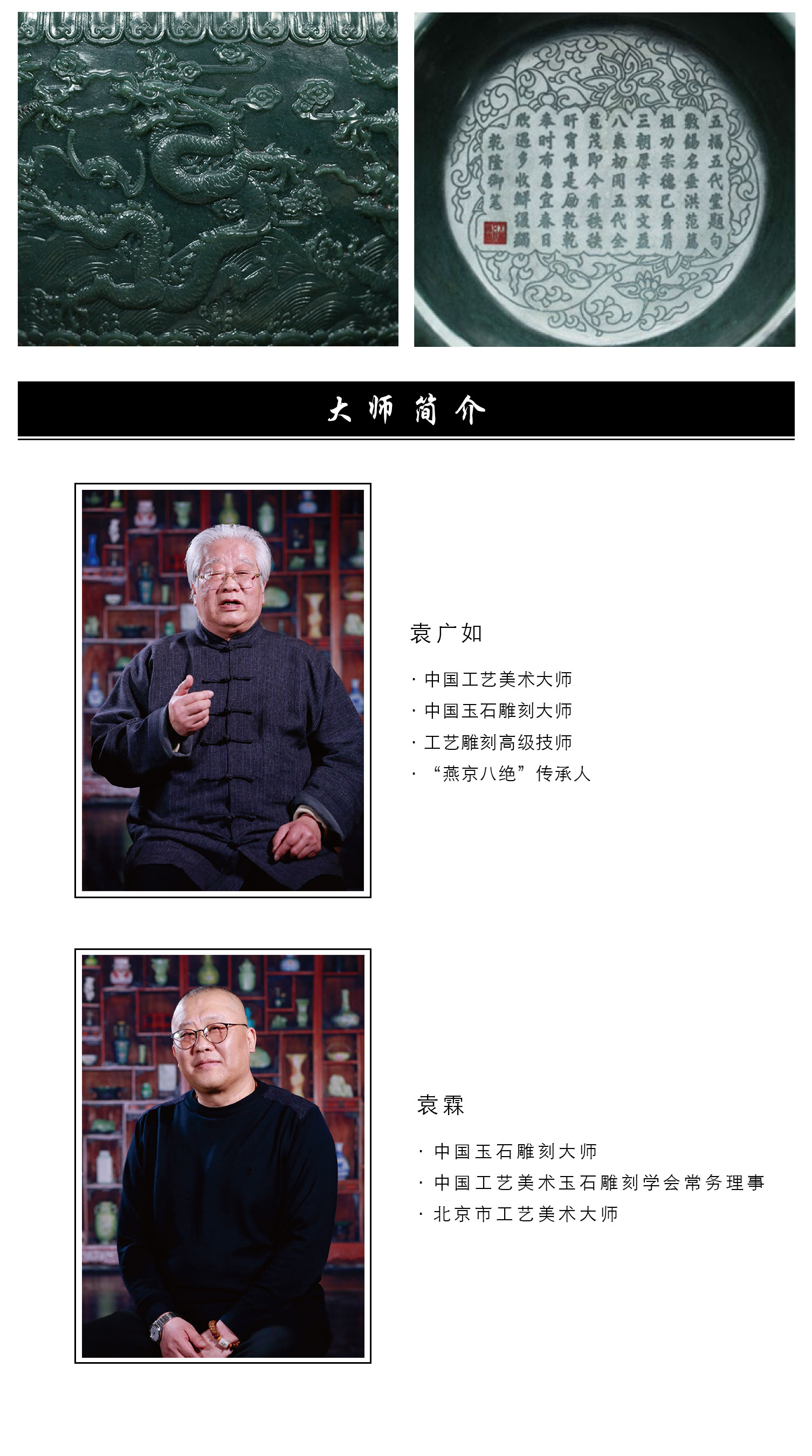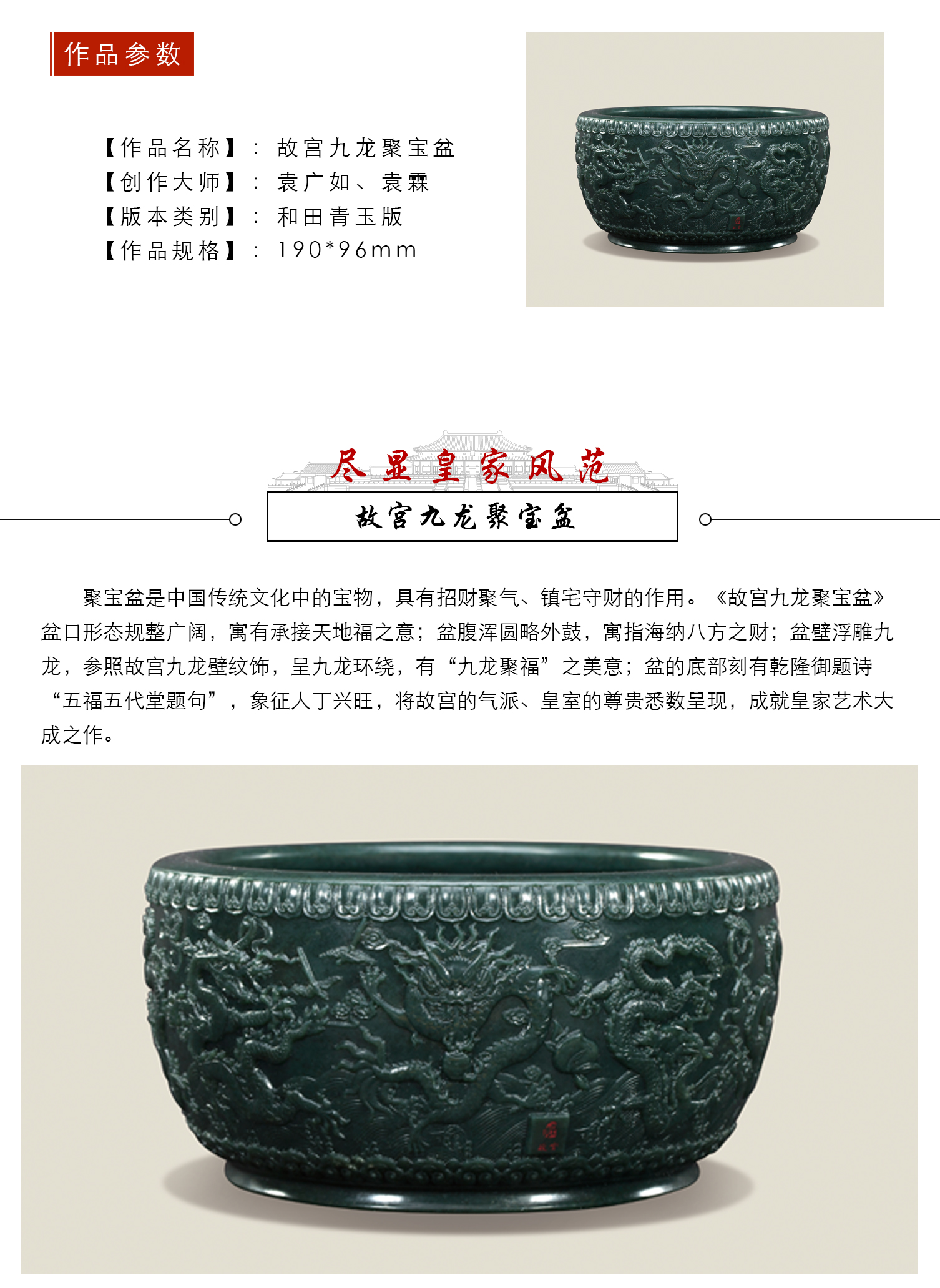 首页 > 景泰蓝丨玉器 > 玉器 > 袁广如 > 【中藝堂】袁广如、袁霖《故宫九龙聚宝盆》和田青玉版