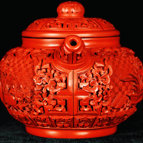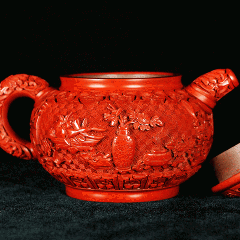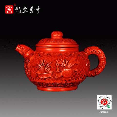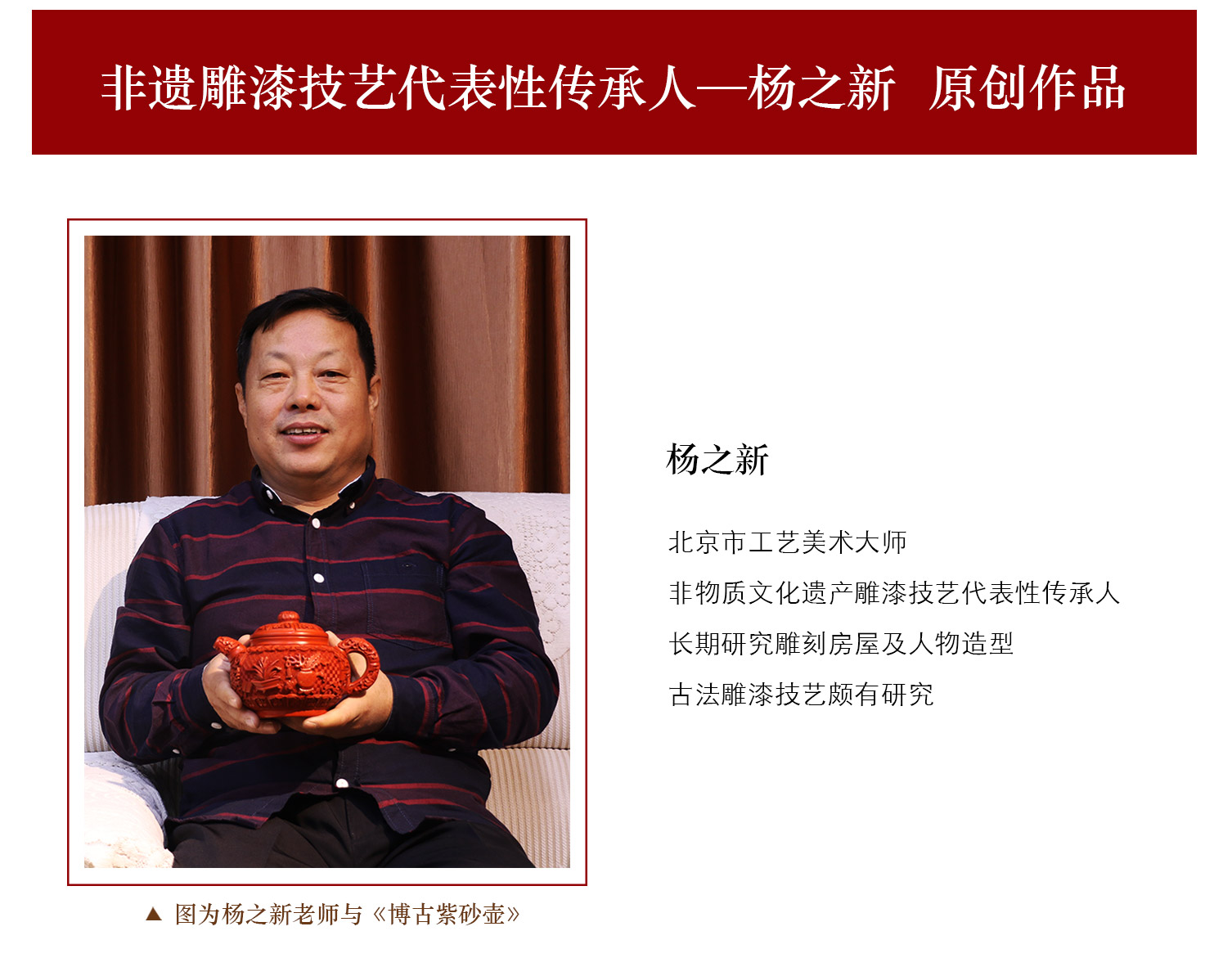 【中藝堂】杨之新 雕漆《博古紫砂壶》