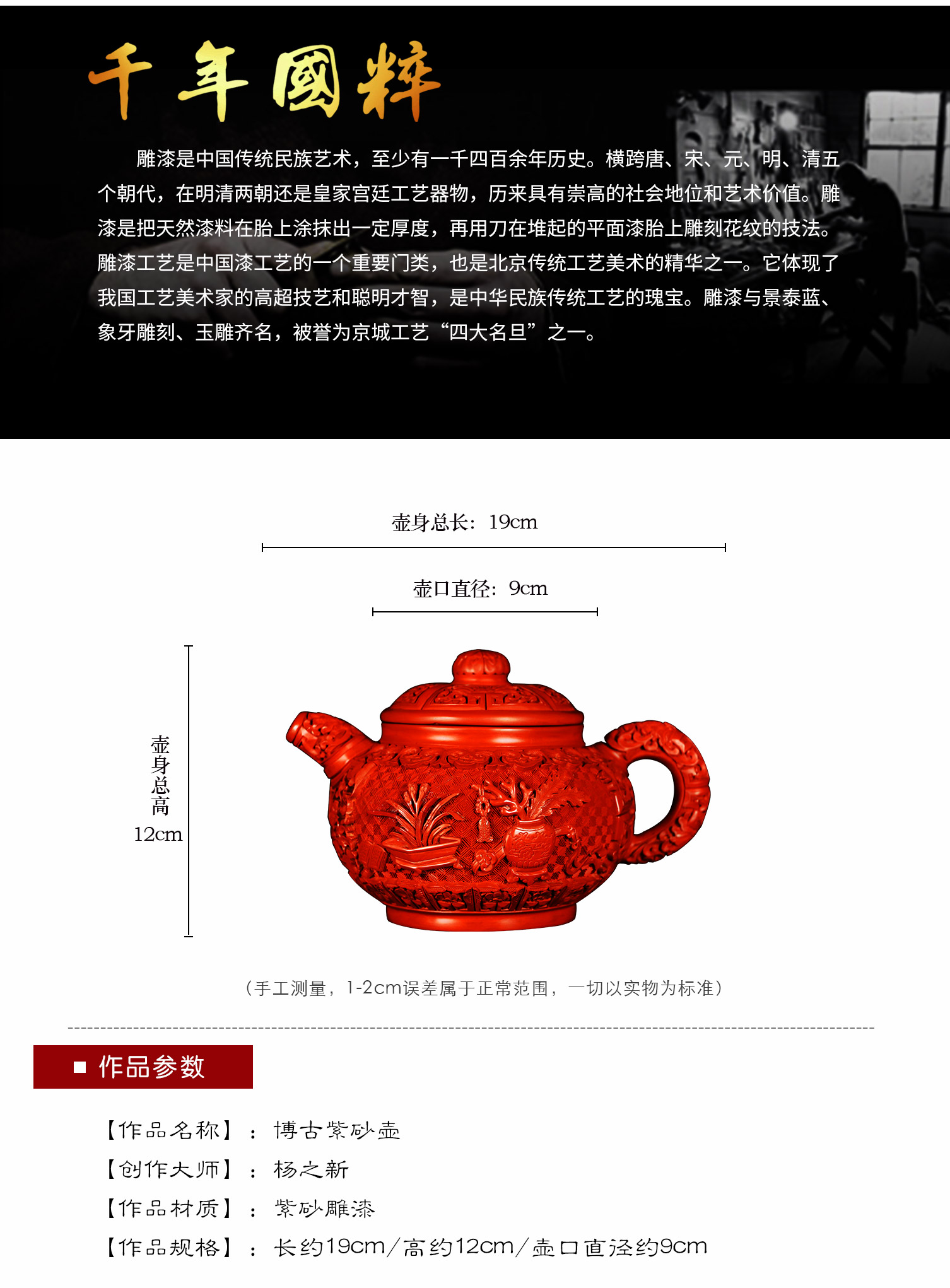 首页 > 錾刻丨紫砂丨雕漆 > 雕漆 > 杨之新 > 【中藝堂】杨之新 雕漆《博古紫砂壶》
