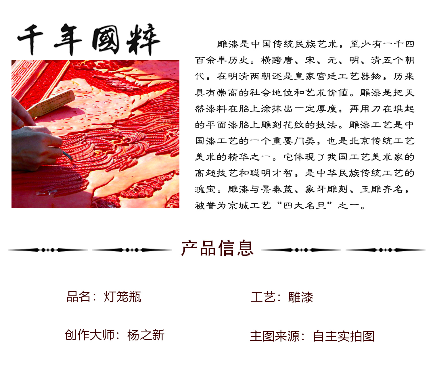 首页 > 錾刻丨紫砂丨雕漆 > 雕漆 > 杨之新 > 【中藝堂】杨之新 雕漆《灯笼瓶》