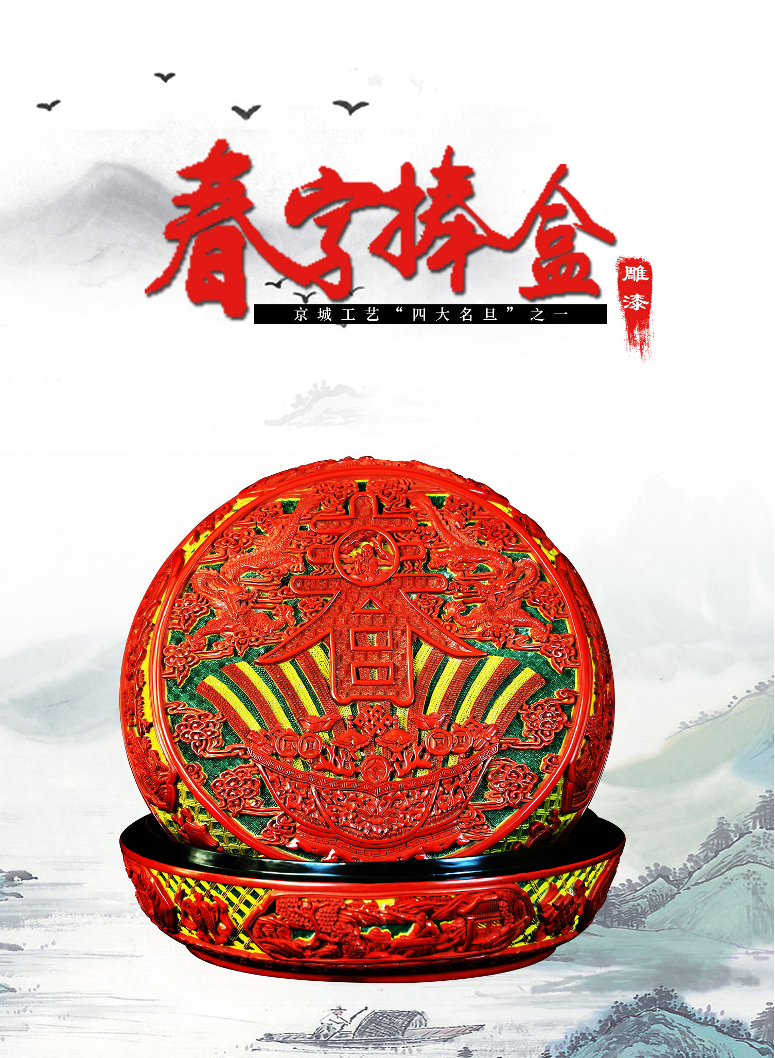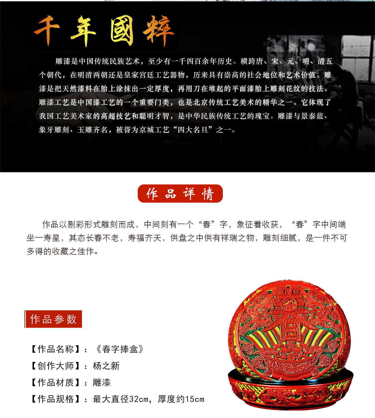 【中藝堂】杨之新 雕漆《春字捧盒》
