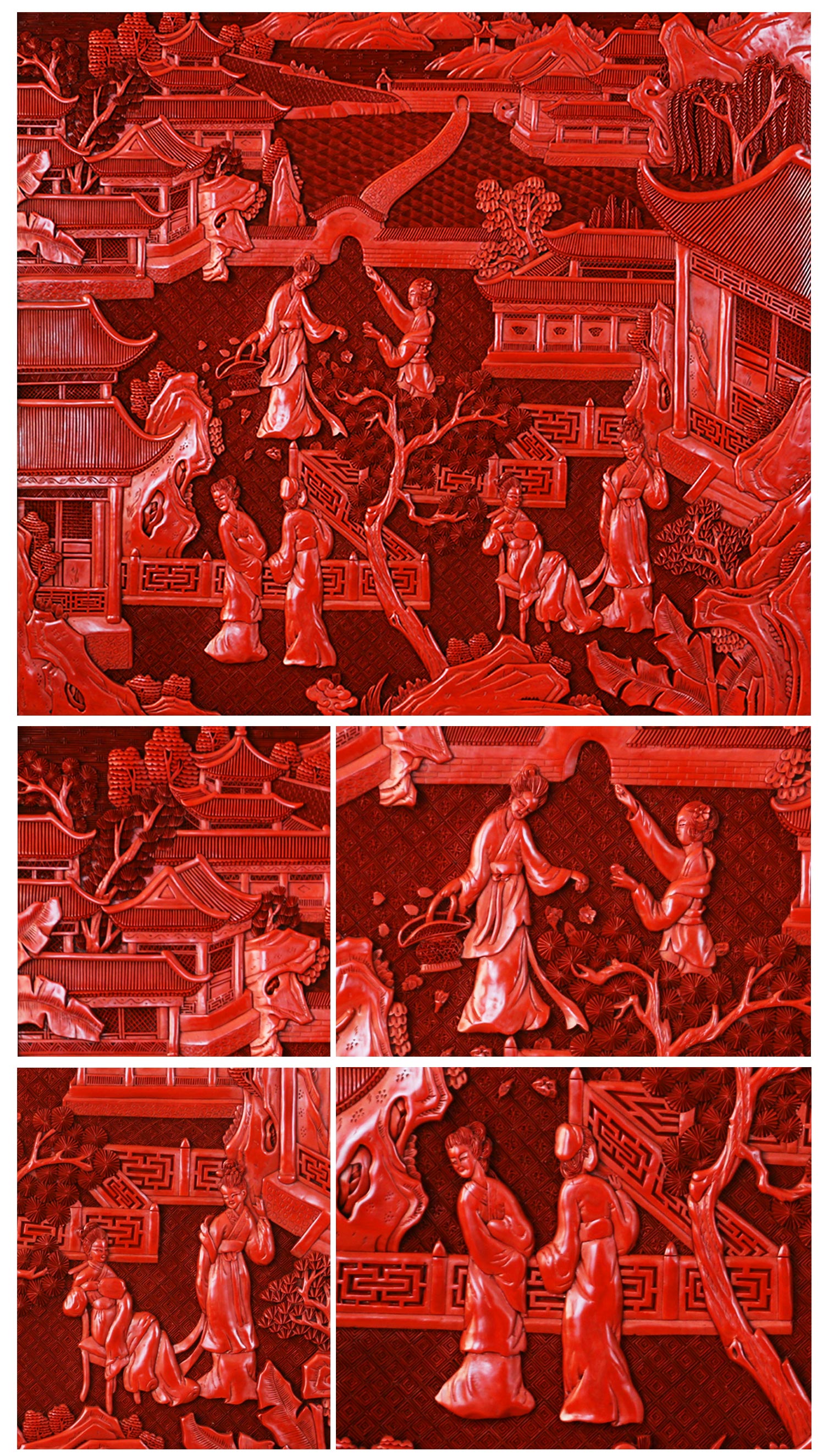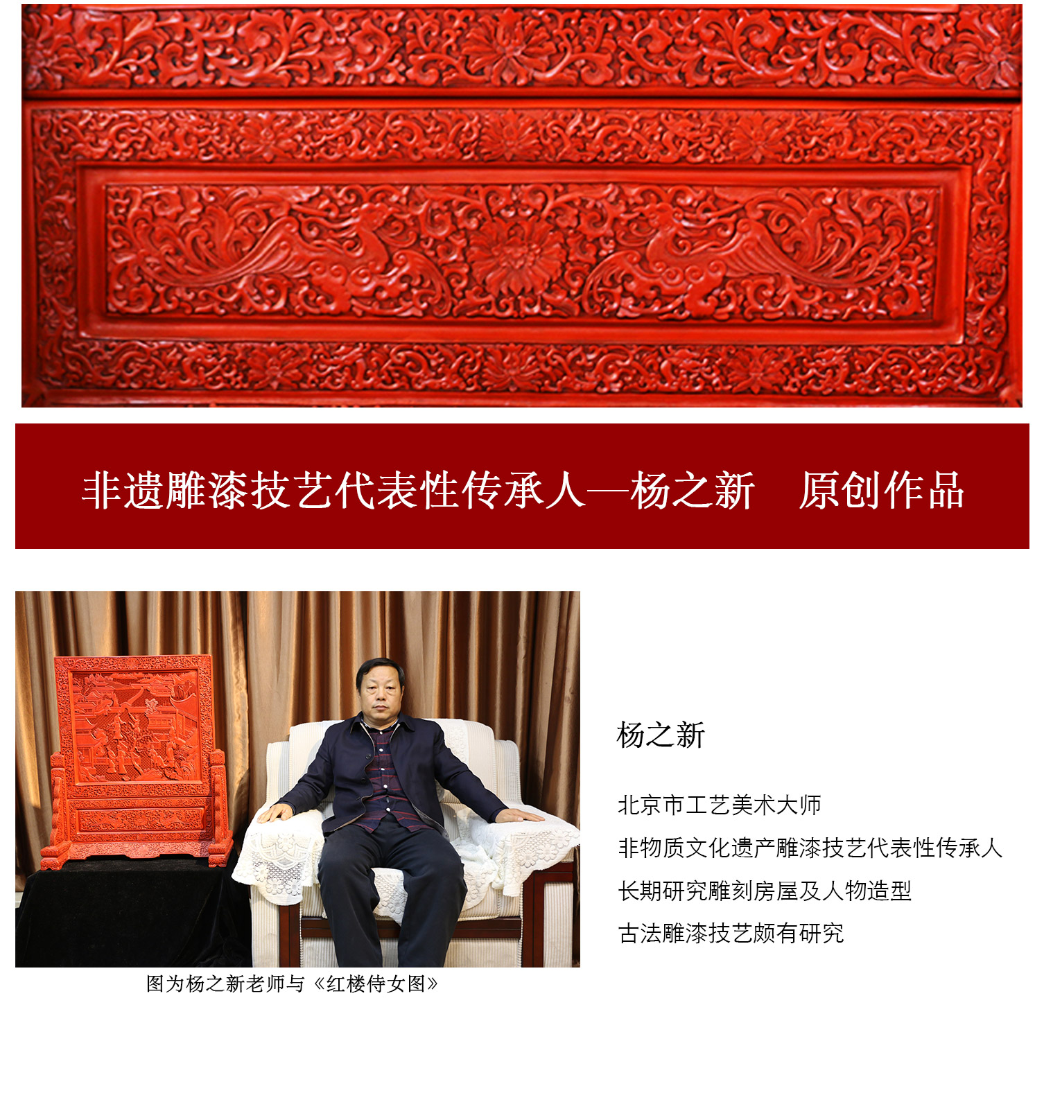 【中藝堂】杨之新 雕漆《红楼侍女游园图》