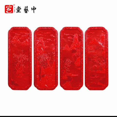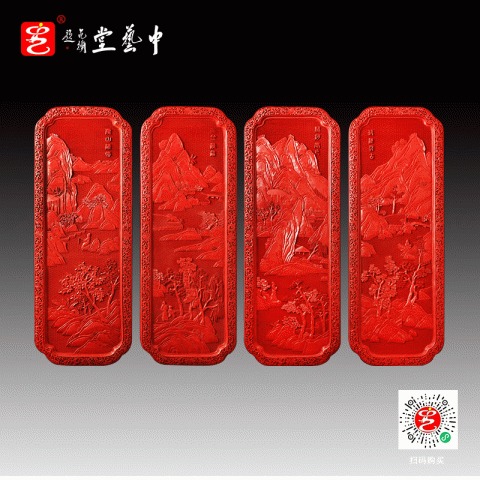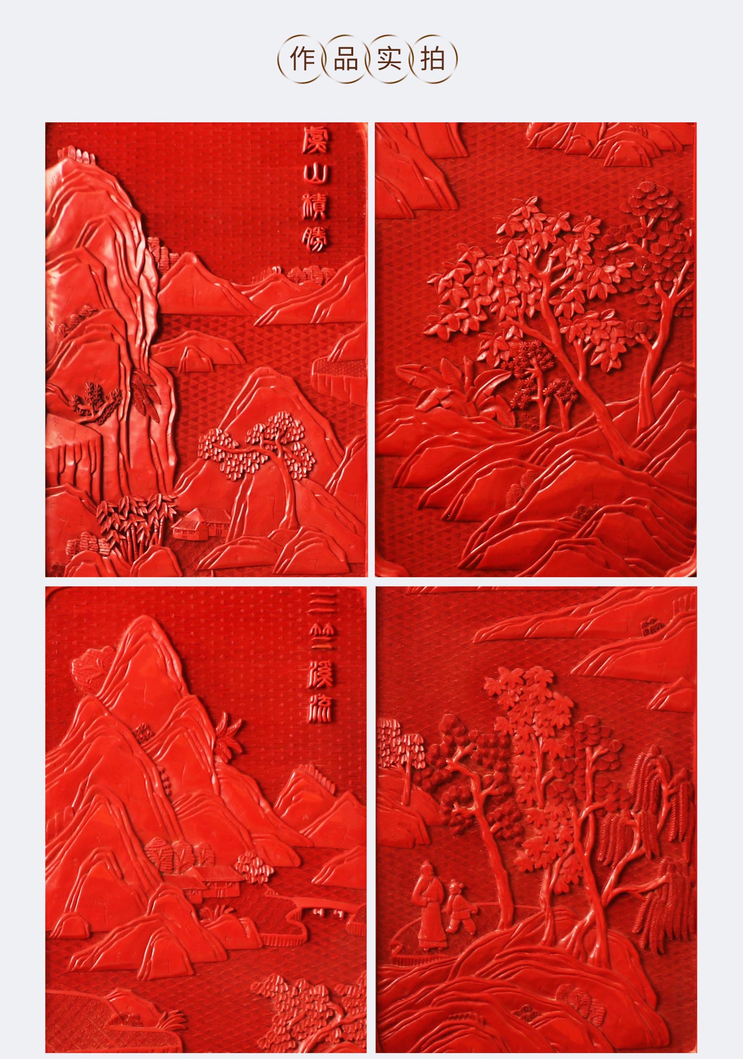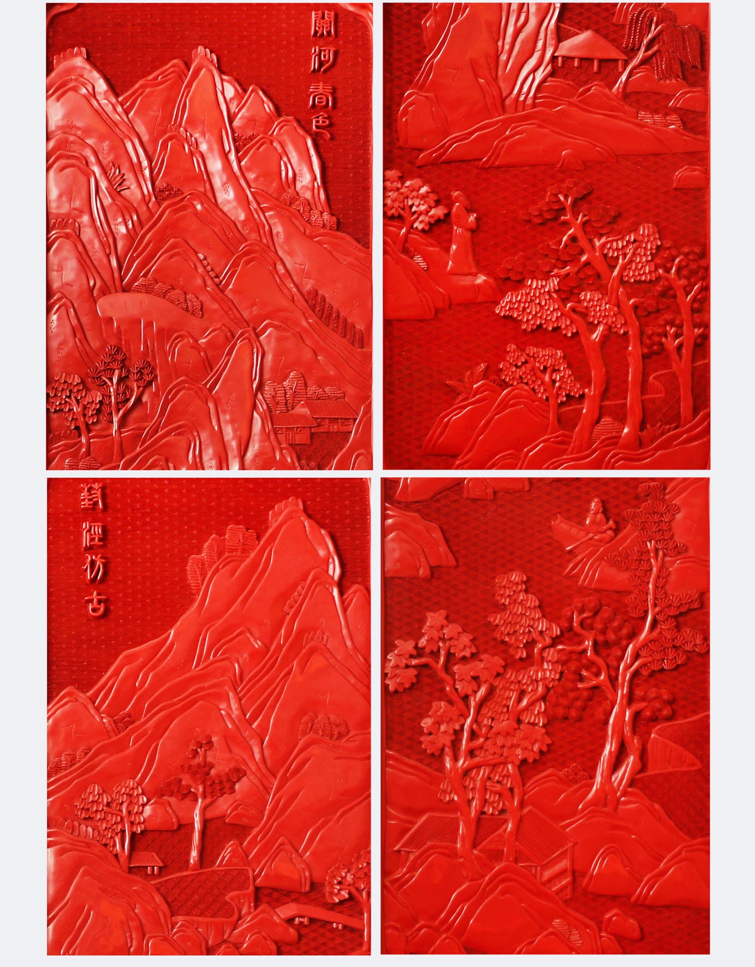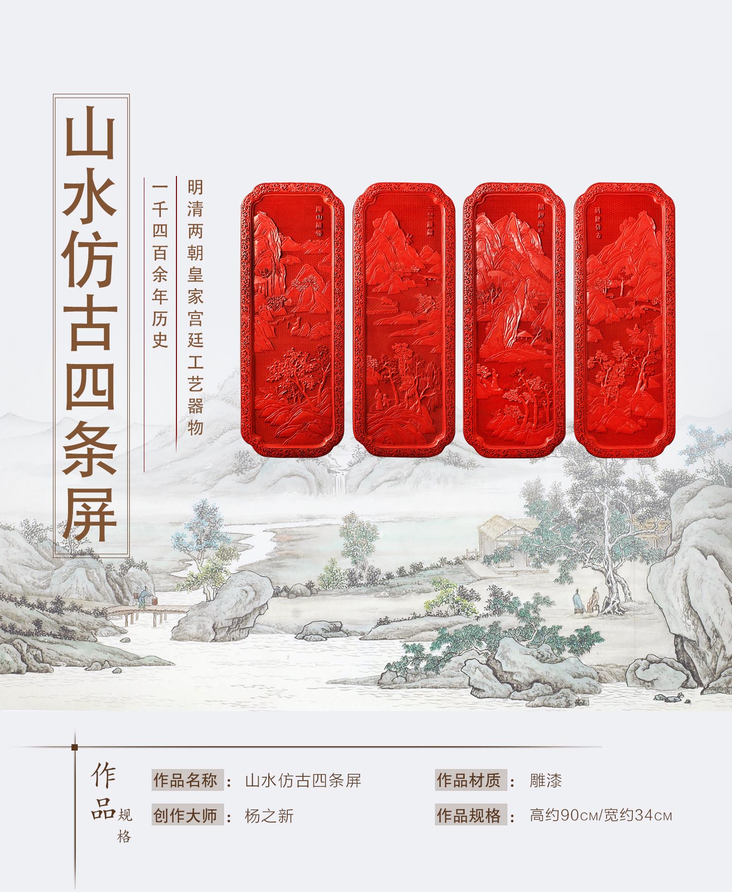 【中藝堂】杨之新 雕漆《山水仿古四条屏》