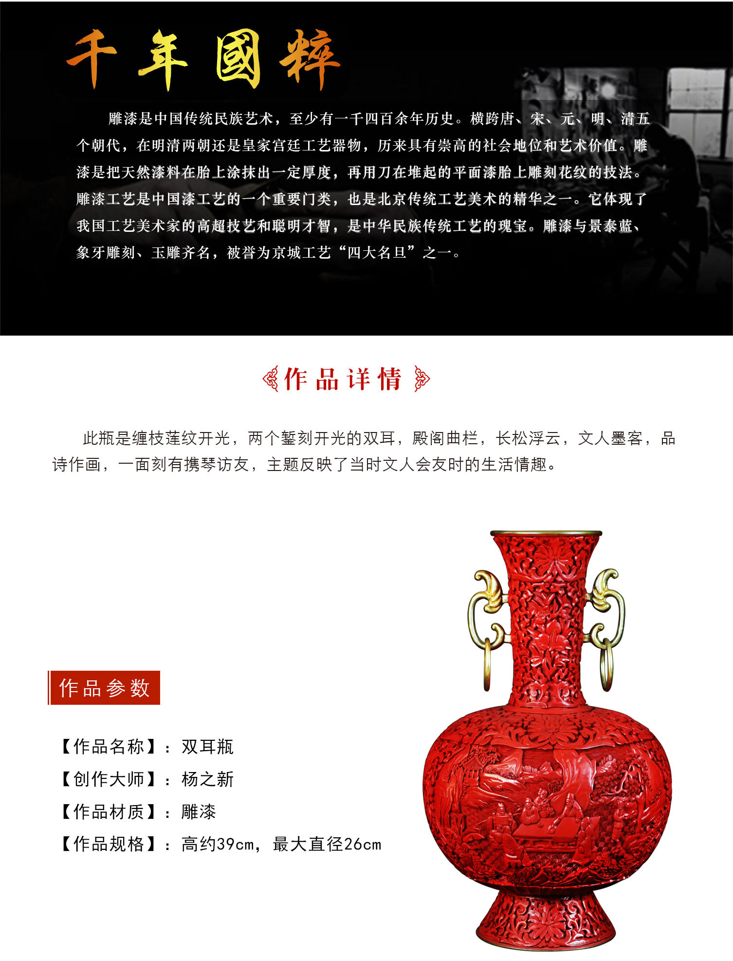 【中藝堂】杨之新 雕漆《双耳瓶》