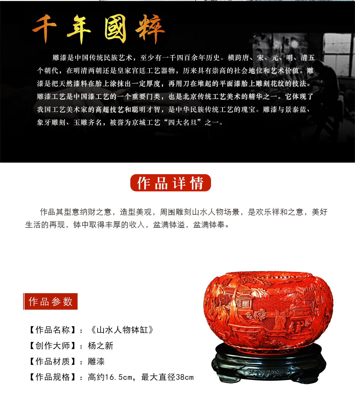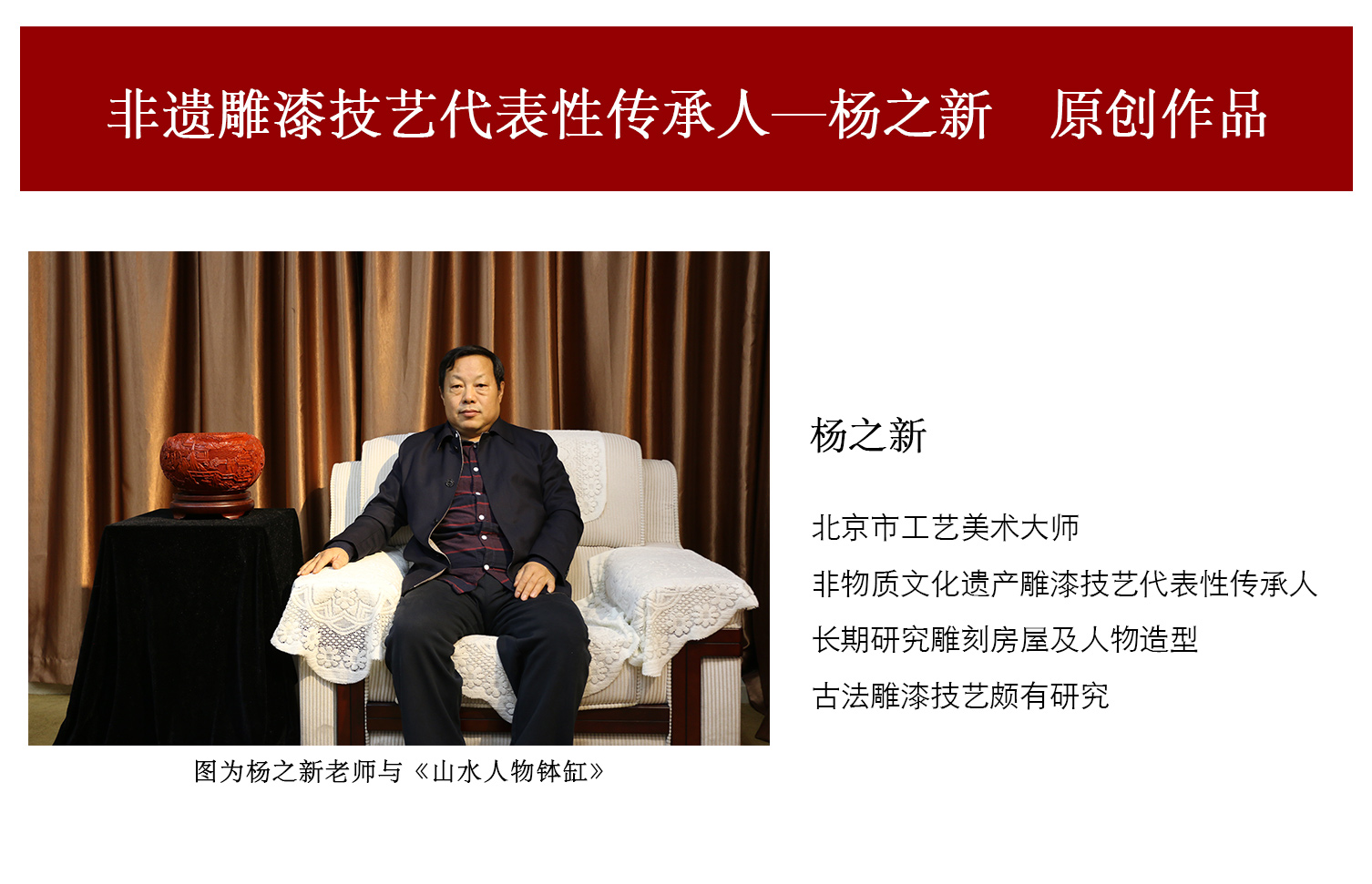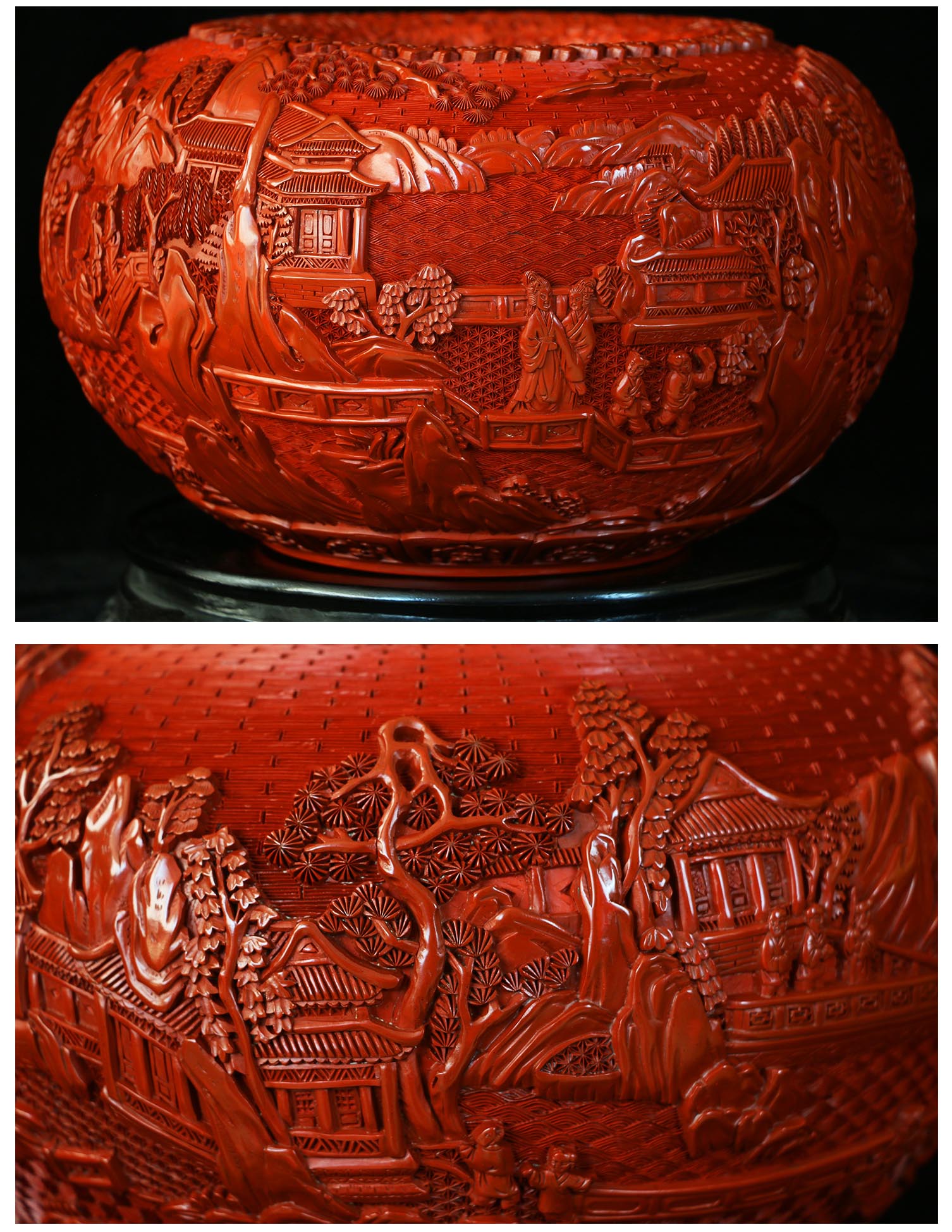 首页 > 錾刻丨紫砂丨雕漆 > 雕漆 > 杨之新 > 【中藝堂】杨之新 雕漆《山水人物钵缸》