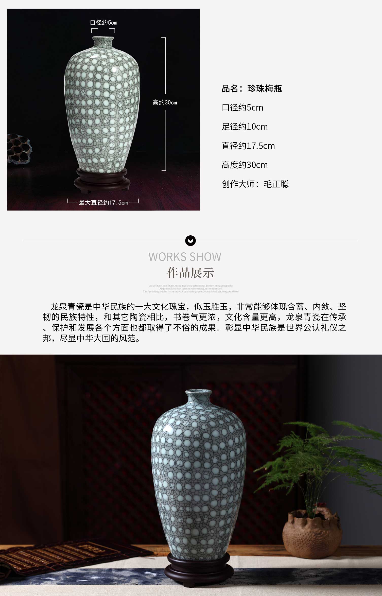 【中藝堂】毛正聪 青瓷双绝《珍珠梅瓶》