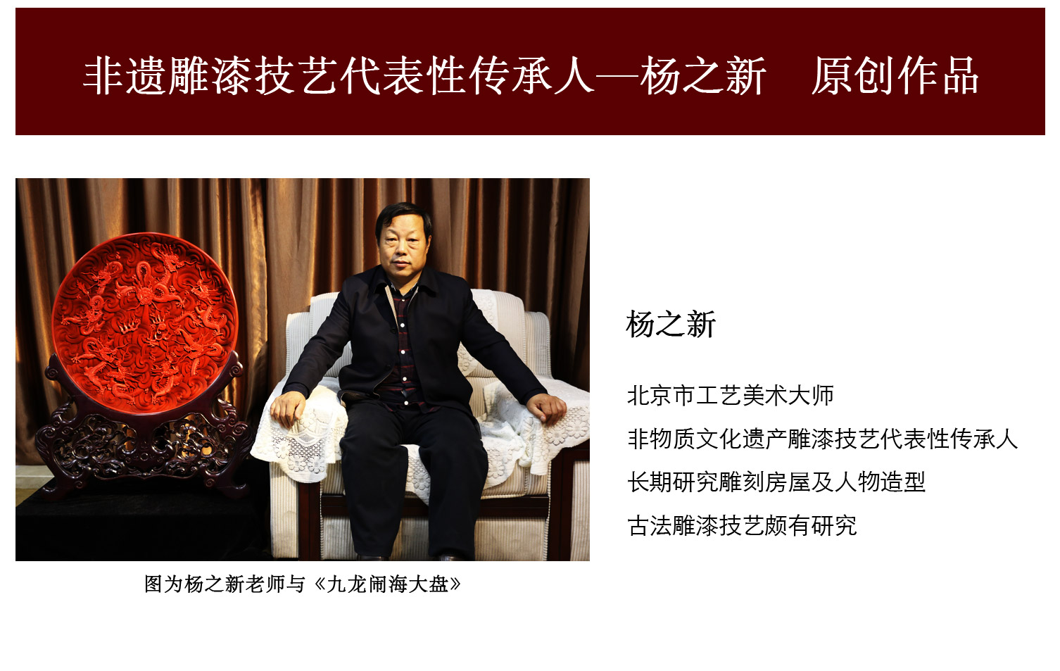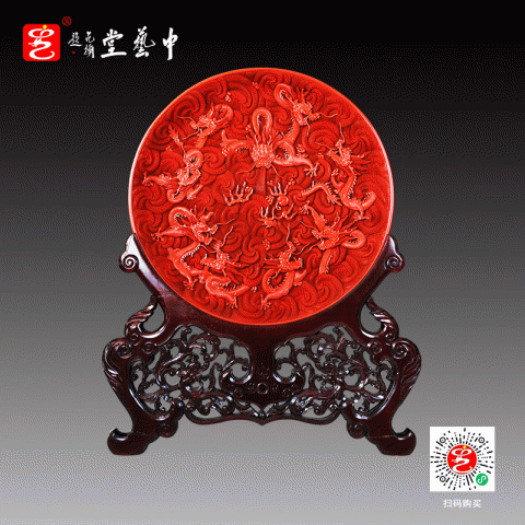 【中藝堂】杨之新 雕漆《九龙闹海大盘》