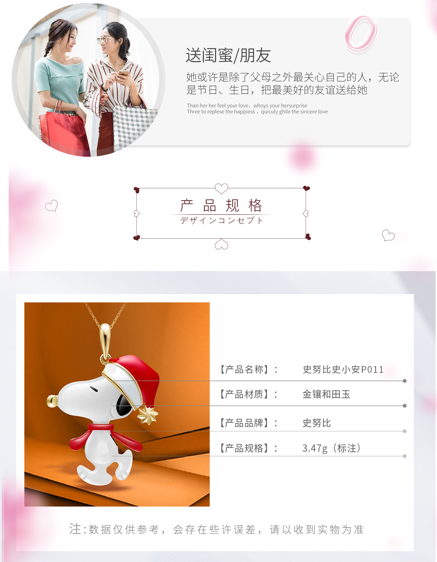 【中藝堂】史努比18K黄金镶和田玉吊坠项链锁骨链颈链女小暖P016