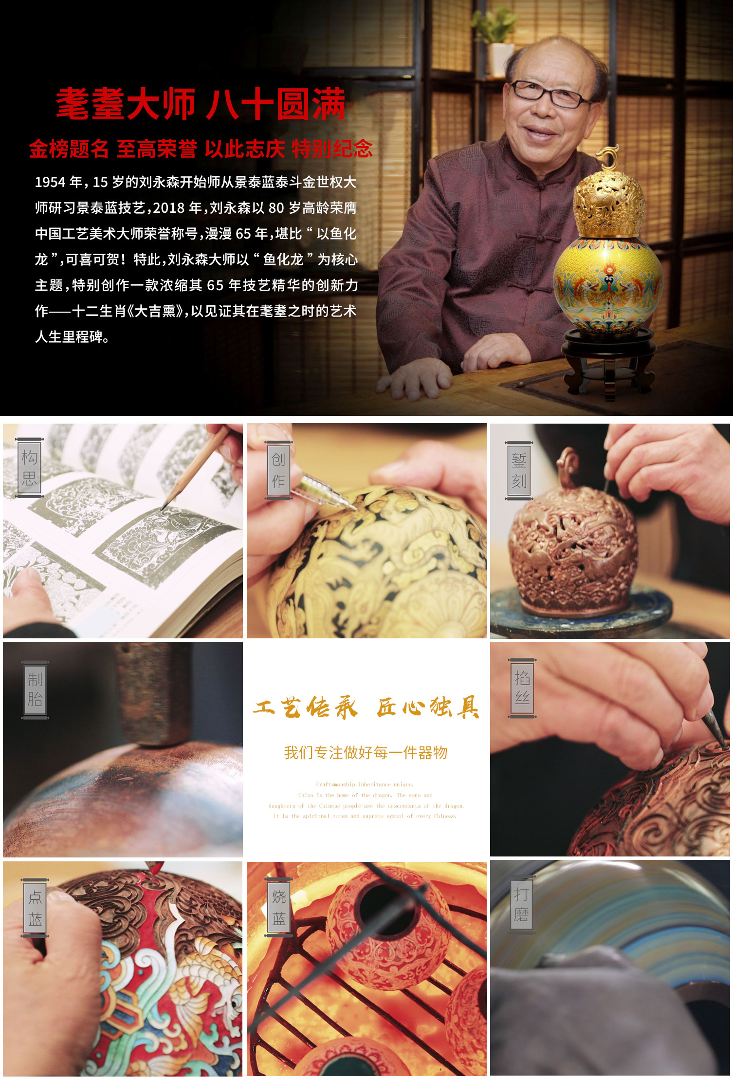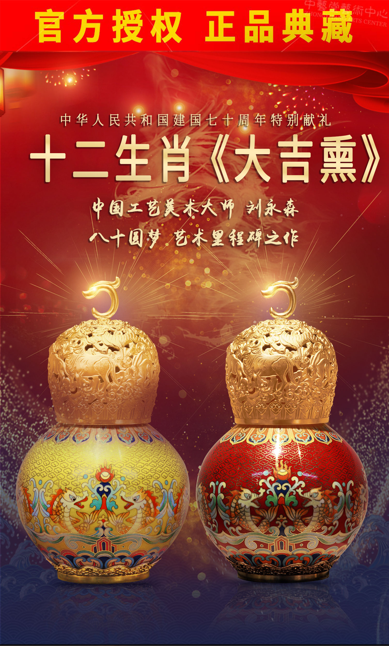 首页 > 景泰蓝丨玉器 > 景泰蓝 > 刘永森 > 【中藝堂】中国工艺美术大师 刘永森 八十圆梦 艺术里程碑之作 十二生肖《大吉熏》故宫红