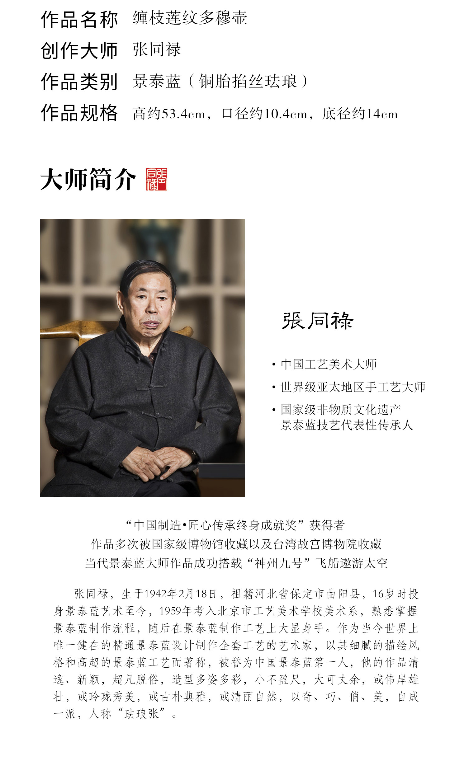首页 > 景泰蓝丨玉器 > 景泰蓝 > 张同禄 > 【中藝堂】张同禄收藏品《故宫六珍·缠枝莲纹多穆壶》