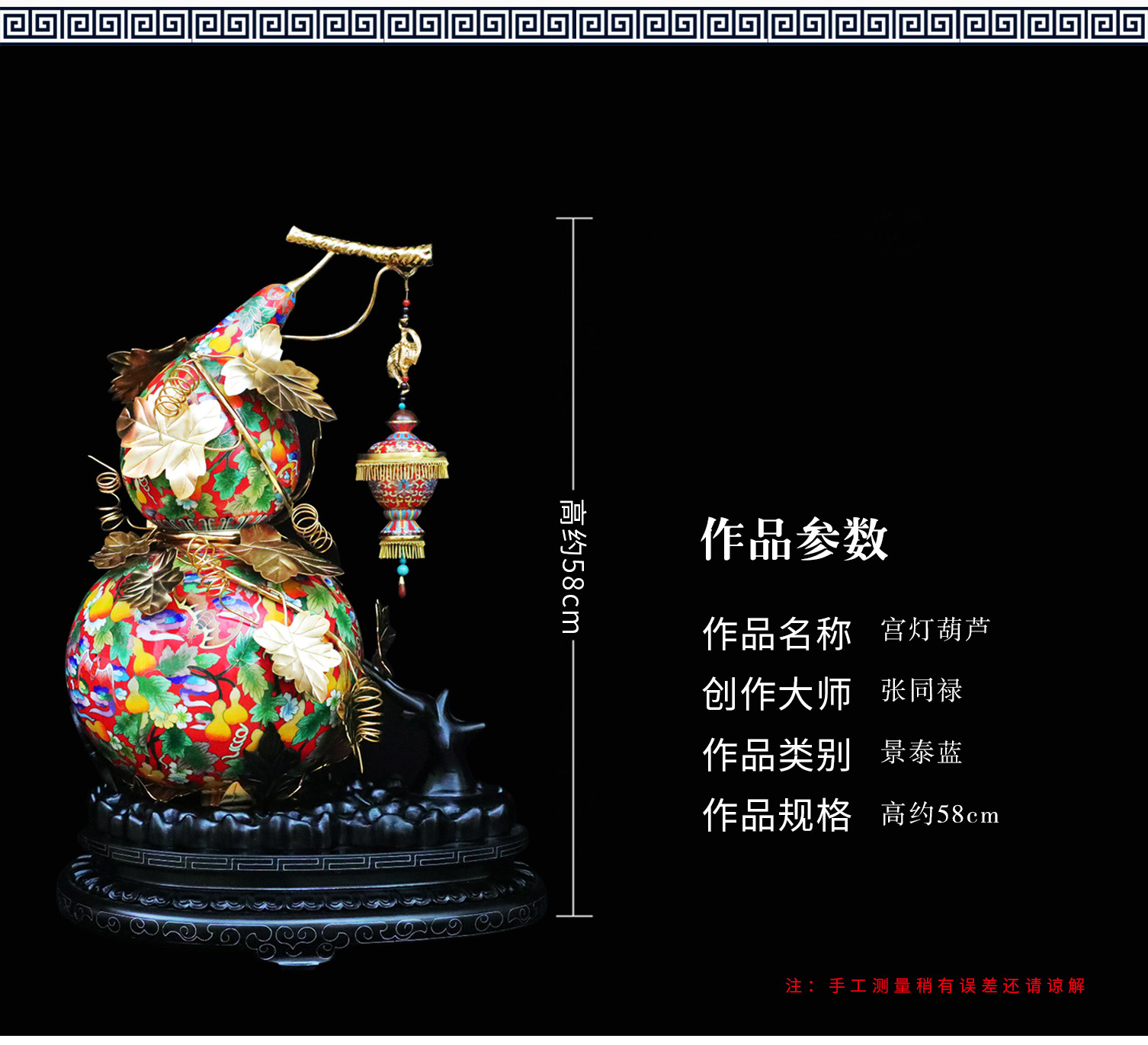 【中藝堂】张同禄 景泰蓝《宫灯葫芦》红