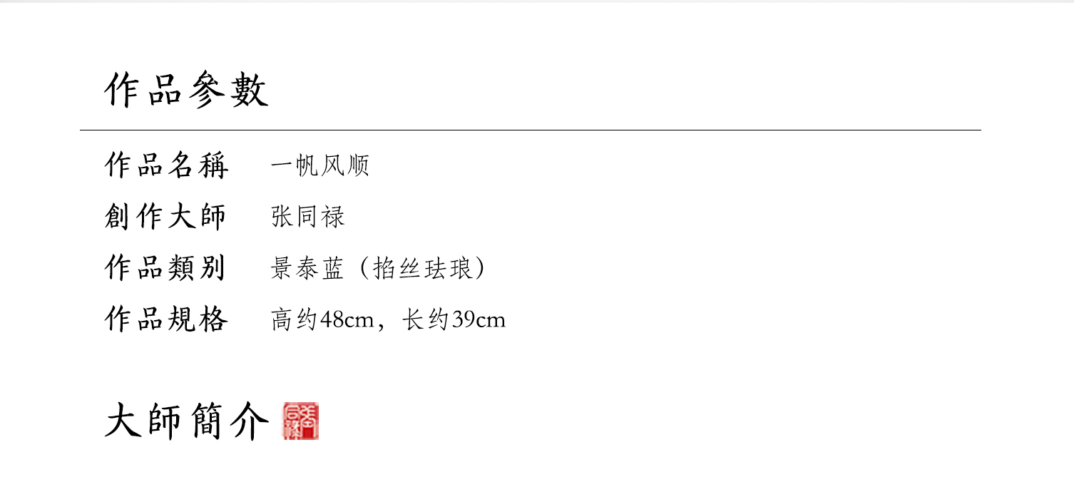 首页 > 景泰蓝丨玉器 > 景泰蓝 > 张同禄 > 【中藝堂】张同禄 景泰蓝《一帆风顺》