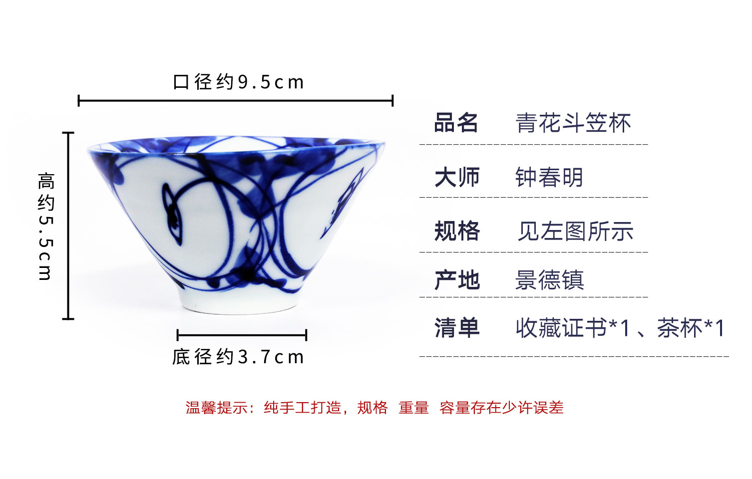 首页 > 精美茶器丨纪念币 > 精美茶器 > 【中藝堂】钟春明 《青花斗笠茶杯》