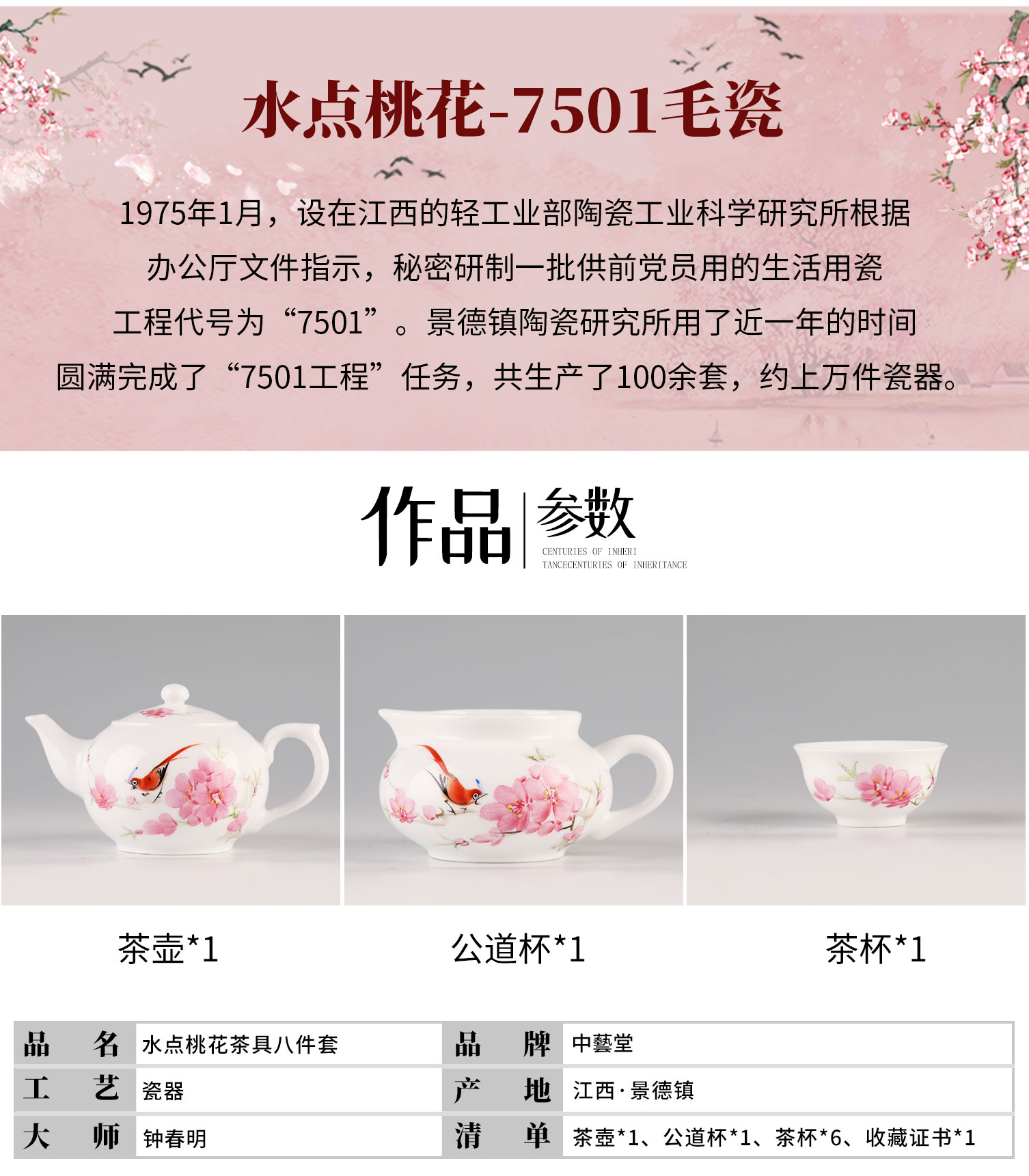 首页 > 精美茶器丨纪念币 > 精美茶器 > 【中藝堂】钟春明 《水点桃花八件套》