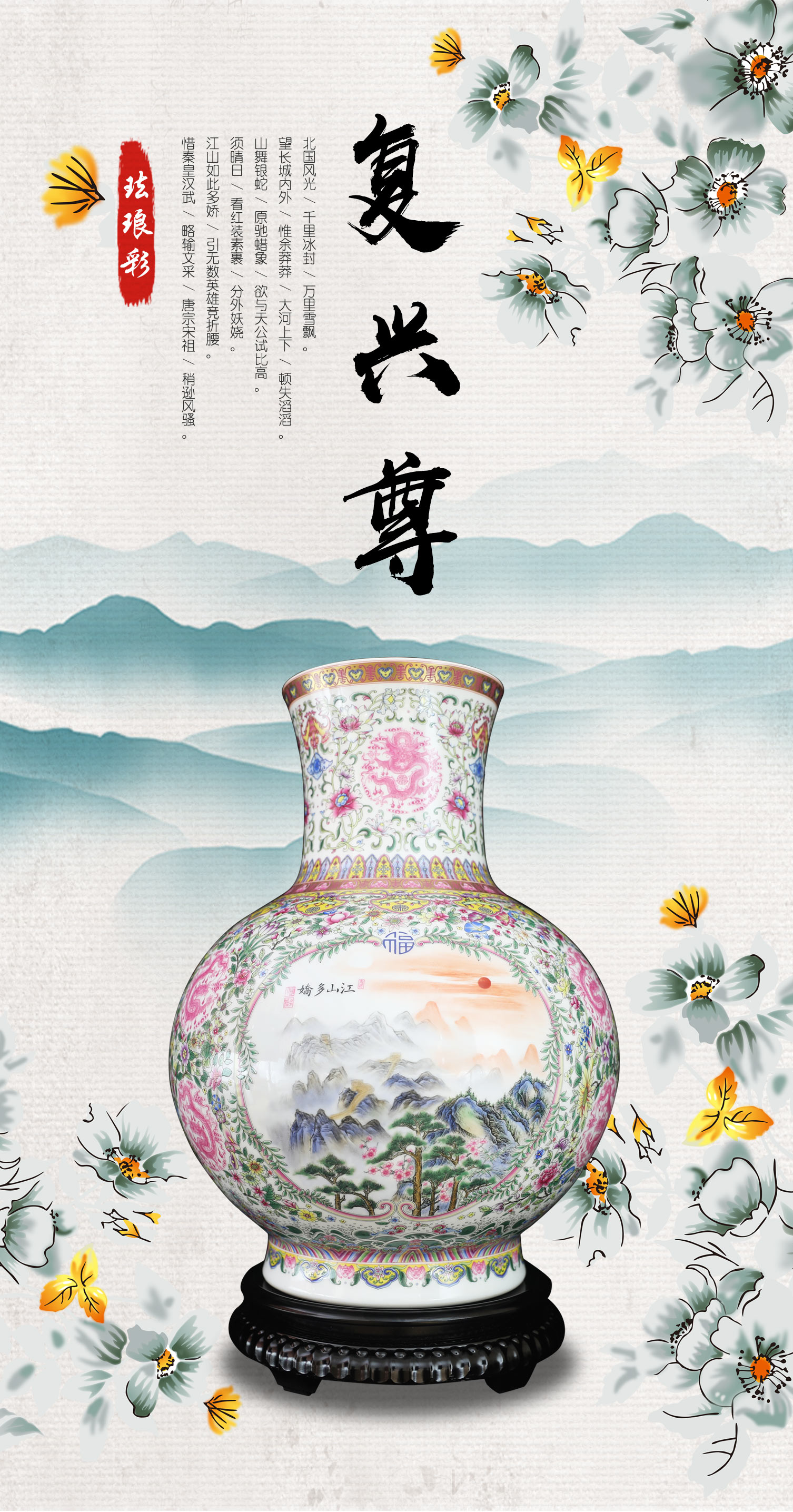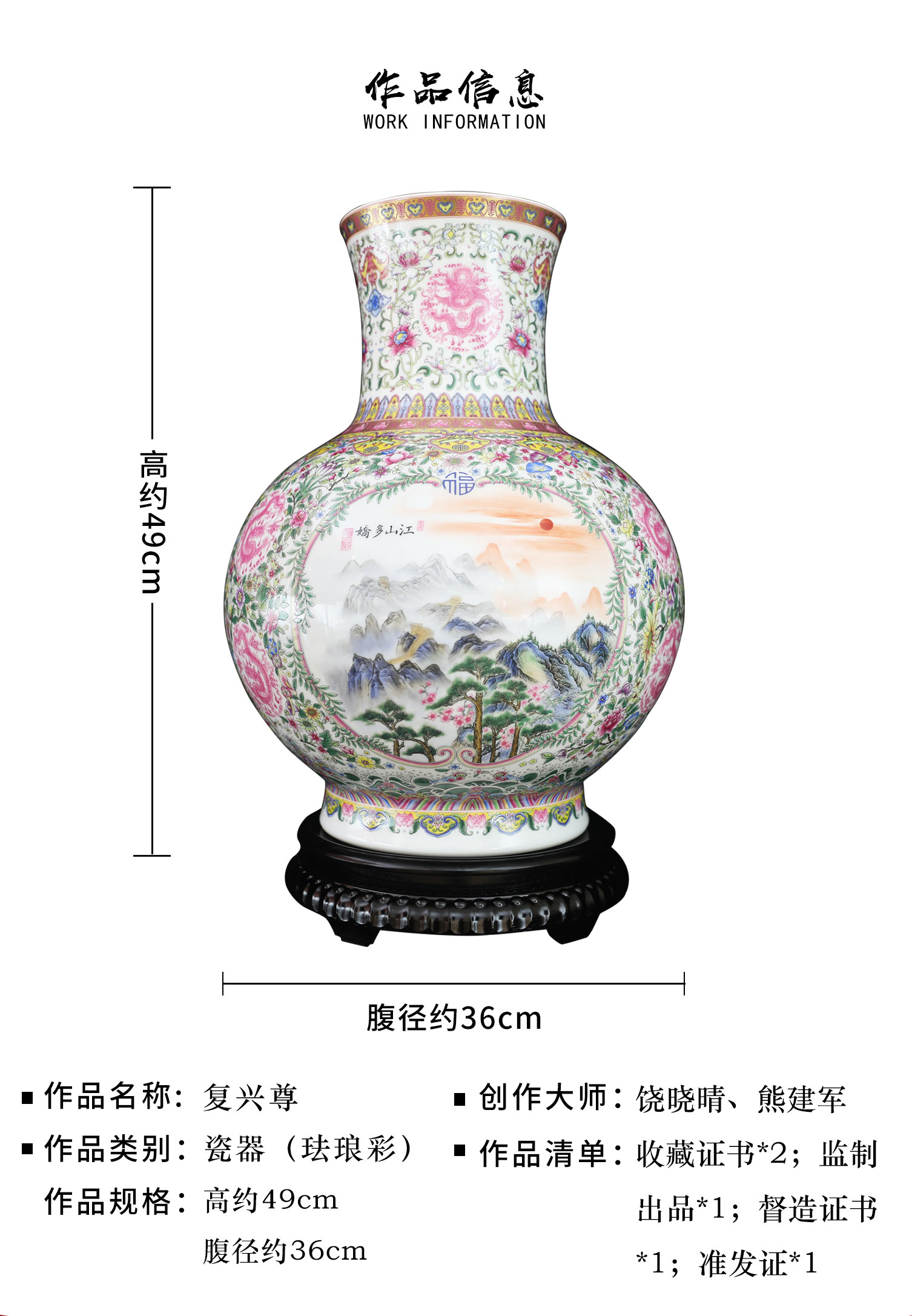 【中藝堂】熊建军瓷器《复兴尊》精彩绝伦 堪称陶瓷艺术经典 收藏品
