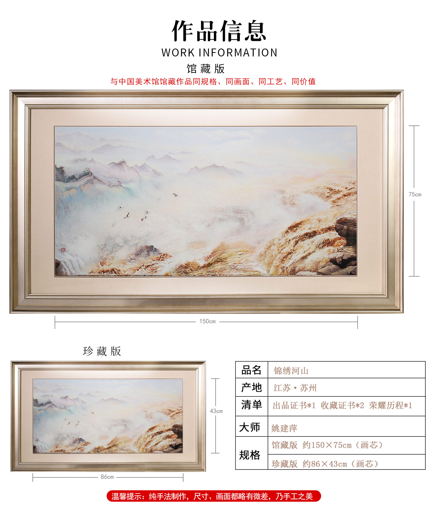 首页 > 花丝镶嵌丨苏绣 > 苏绣 > 姚建萍 > 【中藝堂】姚建萍 《锦绣河山》收藏品 珍藏版