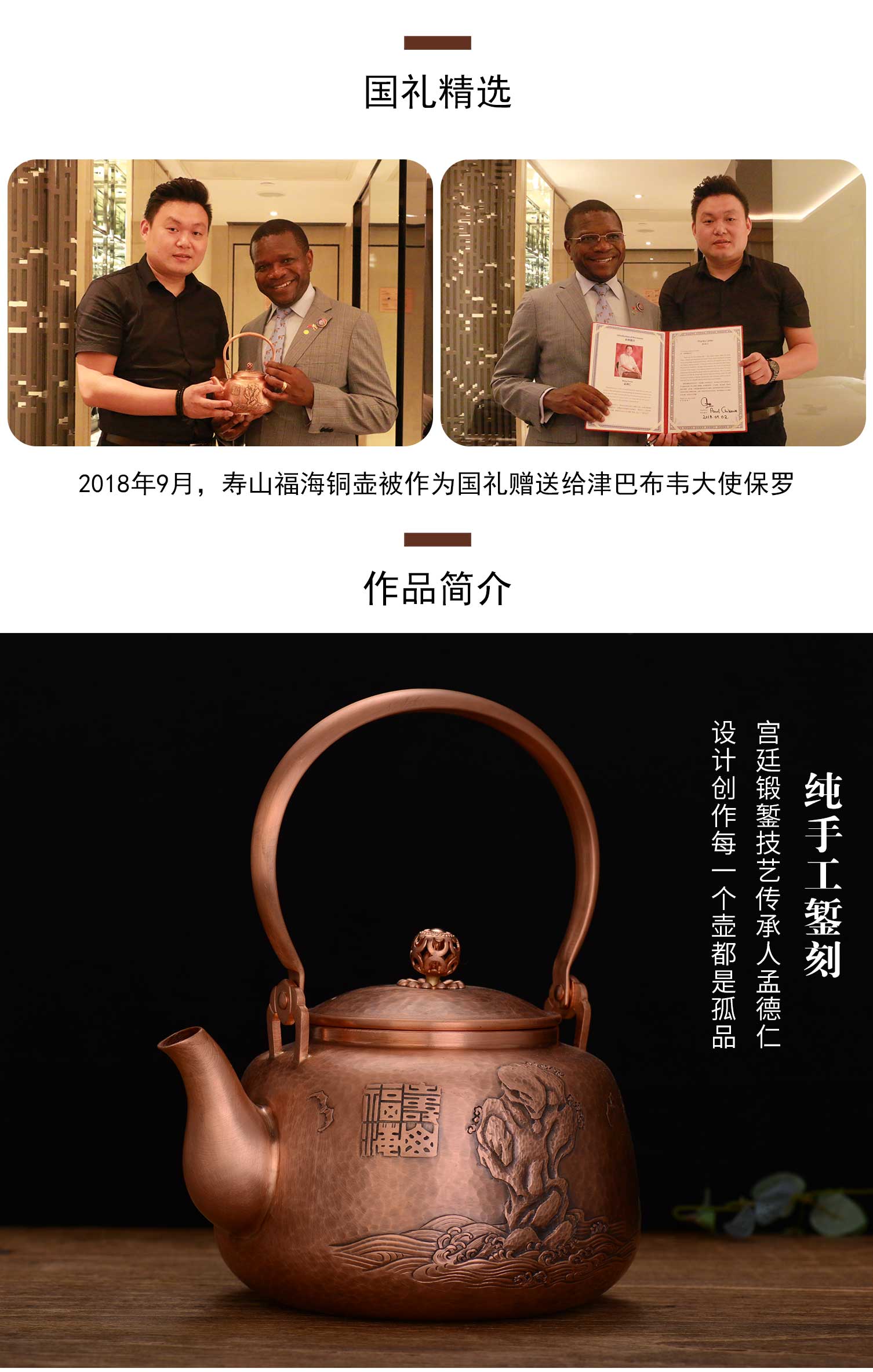首页 > 錾刻丨紫砂丨雕漆 > 錾刻 > 孟德仁 > 【中藝堂】孟德仁 铜壶《寿山福海》