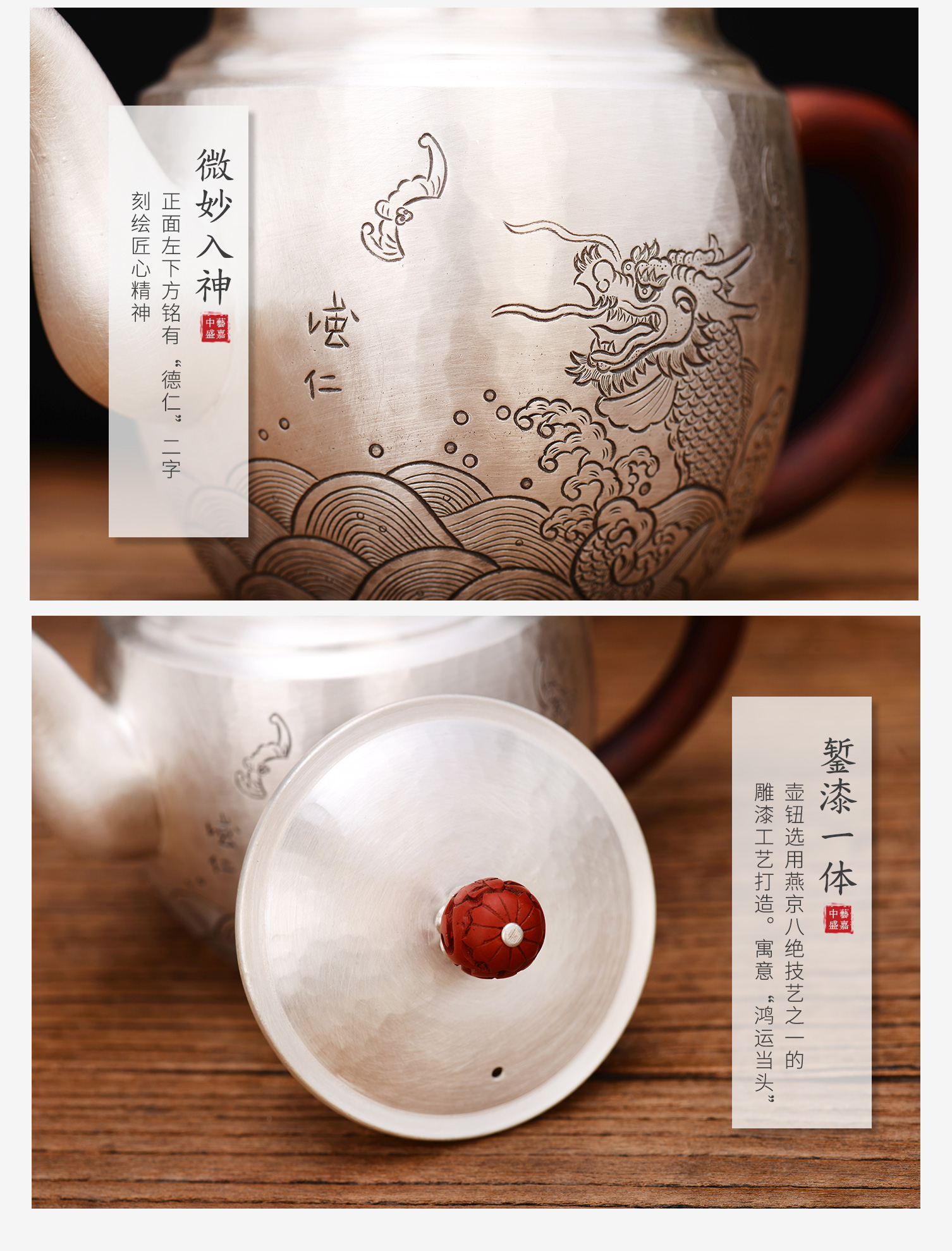 首页 > 錾刻丨紫砂丨雕漆 > 錾刻 > 孟德仁 > 【中藝堂】孟德仁 银壶《平步青云》