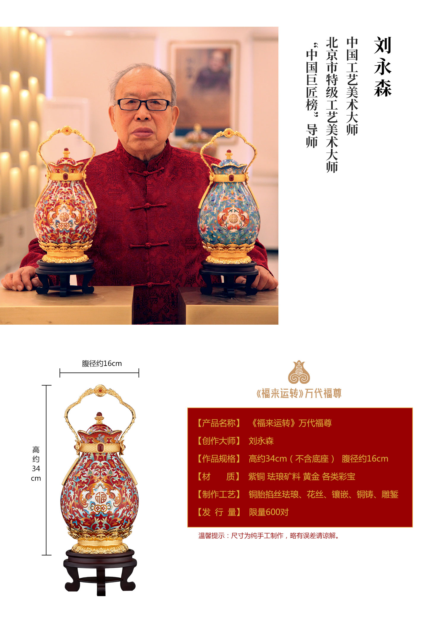 首页 > 景泰蓝丨玉器 > 景泰蓝 > 刘永森 > 【中藝堂】刘永森景泰蓝福来运转万代福尊(单尊)