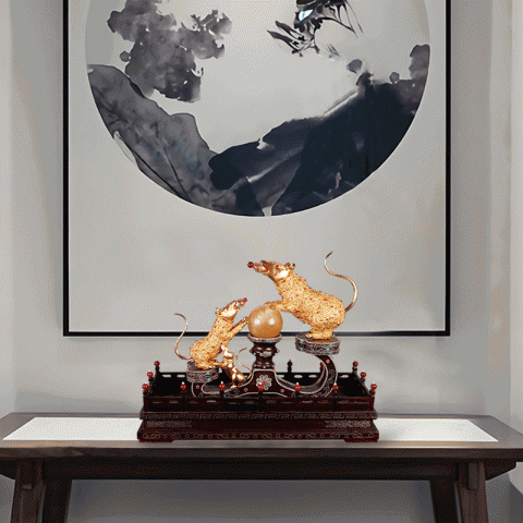 【中藝堂】王树文花丝镶嵌十二生肖·鼠特色年货家居摆件