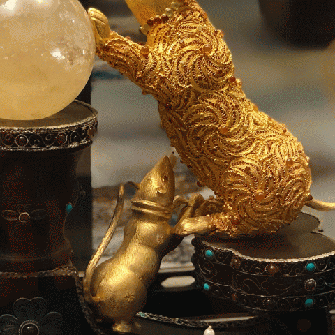 首页 > 花丝镶嵌丨苏绣 > 花丝镶嵌 > 王树文 > 【中藝堂】王树文花丝镶嵌十二生肖·鼠特色年货家居摆件