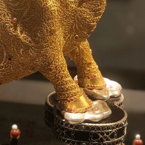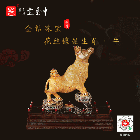 首页 > 花丝镶嵌丨苏绣 > 花丝镶嵌 > 王树文 > 【中藝堂】王树文花丝镶嵌十二生肖·牛特色年货家居摆件